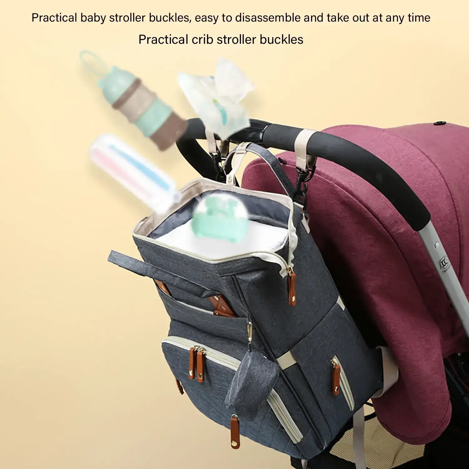 【Large Capacity】: This mother and baby bag features a spacious interior to accommodate all essentials for outings. 【Insulated Compartments】: Equipped with insulated sections, this bag keeps baby food and drinks at the right temperature during travel. 【Versatile Carry Options】: This bag can be used as both a shoulder and backpack option, providing adaptability for parents on the go. 【Stroller Attachment】: Designed with stroller hooks, this bag easily attaches to any stroller for added convenience while out. 【Lightweight Materials】: Crafted from lightweight materials, this bag ensures easy portability without adding extra weight during outings.
