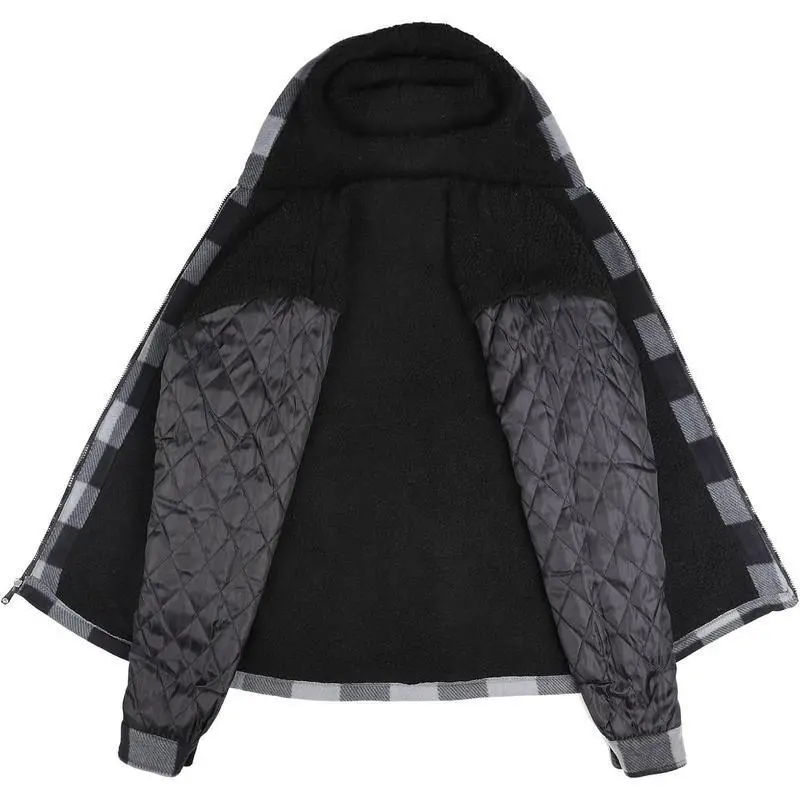 Product Description: Heavy Thick Flannel Plaid Jacket Sherpa Fleece Lined Hoodies for Men Zip Up Winter Warm Coat Buffalo Zipper Sweatshirt Shell: 55% Cotton+45% Polyester; Material of Lining: 100% Polyester Fleece lined except the sleeves.Soft, breathable, skin-friendly, comfortable to wear. Features:Plaid color, Full front zipper, Drawstring hooded for best athletic fit, Hand-warmer front pockets. Machine washable. Occasion: Suitable for casual, daily wear, leisure, outdoor, going out, jogging, exercise, running, sports, street, school. Note: As different computers display colors differently.The color of the actual item may vary slightly from the above images, thanks for your understanding. Please order a size larger than what you normally wear.