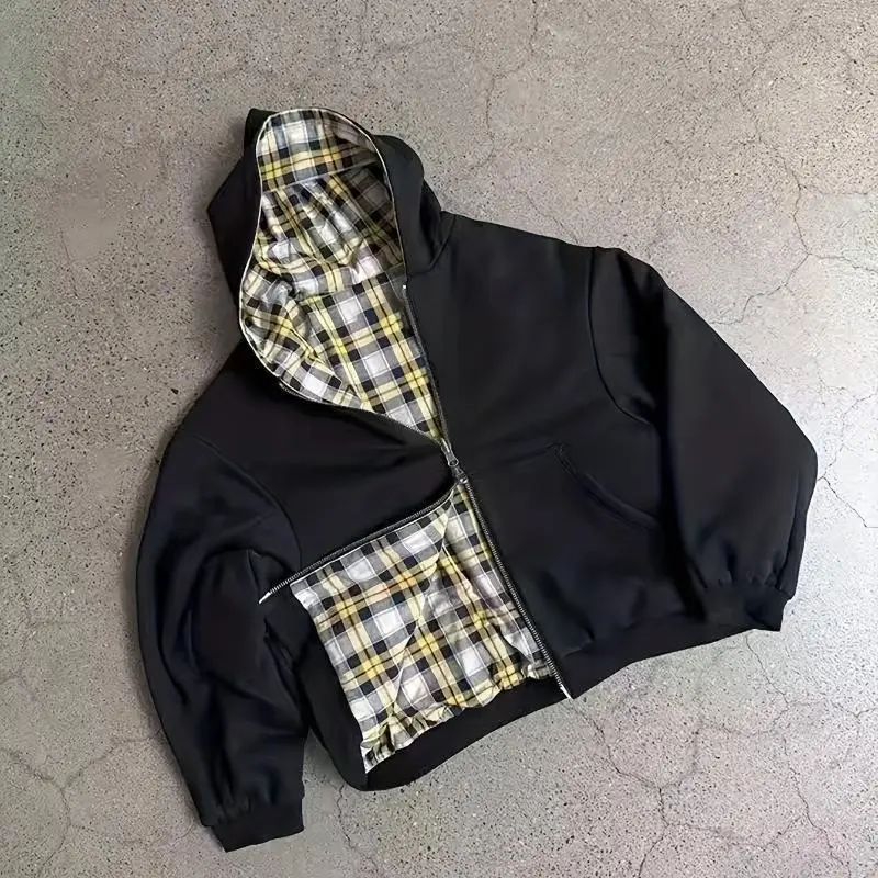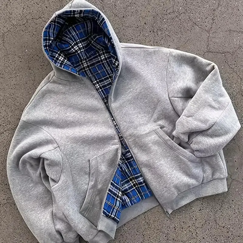 Retro Y2K Plaid Hoodie ✨Level up your style with this retro Y2K plaid hoodie!🌟 Inspired by the vintage style of the 90s and 2000s, with a plaid jacket, this hoodie offers a timeless appeal.Available in black, white, beige and brown, it suits all seasons.The oversized fit ensures comfort, while the long sleeve offers versatility.Perfect for layering, this casual outerwear piece is machine washable for easy care.Ideal for men's fashion enthusiasts, it's a wardrobe essential. Key Features Versatility and style This hoodie is a versatile piece for the men's wardrobe.It can be paired with various sets for a stylish look.The long sleeves and the check pattern make this top a standout piece.Whether for casual outings or for layering, this hoodie is an excellent addition to your collection.