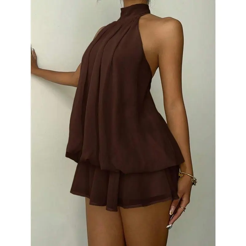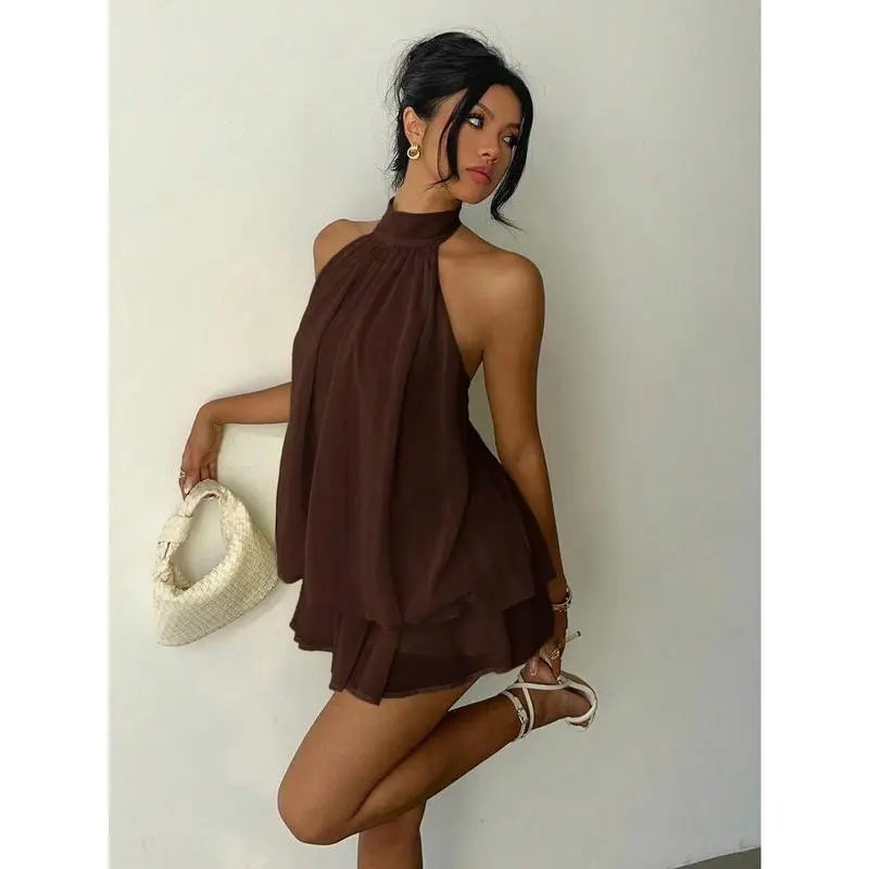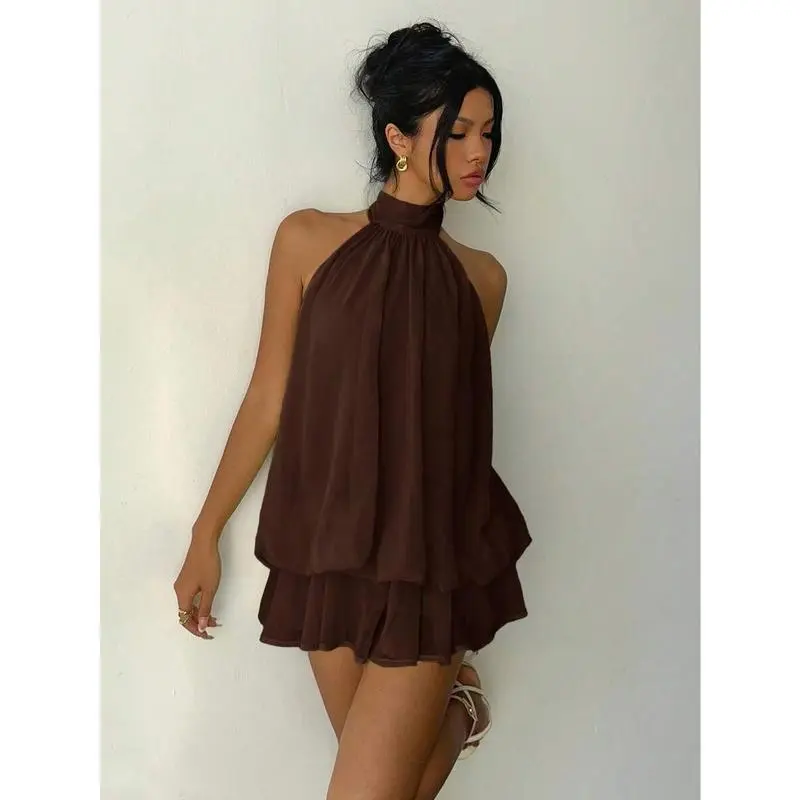 Women's Elegant Brown Halter Tie Mini Dress,Elegant Dresses For WomenGiftGift