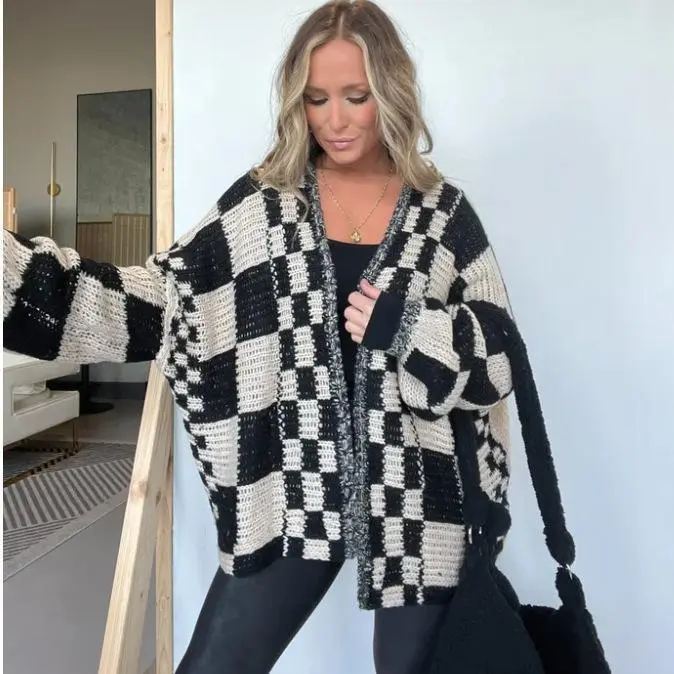 High Quality Fabric - The Casual Long Sleeve Cardigan Is Made Of Soft And Warm Fabric, Which Brings You a Cozy Wearing Experience.Thanks To The Loose Fit Cut, The Open Front Cardigan Sweater Is Suitable For Most Figures/Fashion Design - Open Front Cardigan For Women Is Easy To Put On And Off.v Neck Design Add a Touch Of Femininity.Checkered Patterned Brings Vibrancy To Make Chunky Cardigan Knit Outwear More Chic And Trendy/Khaki Long Sleeve Cardigan Sweaters For Women / Blue Knit cardigans for women / Brown Outwear For Women Winter / Black Sweater And Cardigans For Women/Fashion Collocation - Embrace The Cute Open Front Cardigan That Effortlessly Elevate Your Outfit. The Ribbed Knit Cardigan Sweater Perfectly Goes Well With Crop Tanks, Skinny Jeans And Sneakers For a Casual Look.The Trendy Cardigan Offers Endless Styling Possibilities