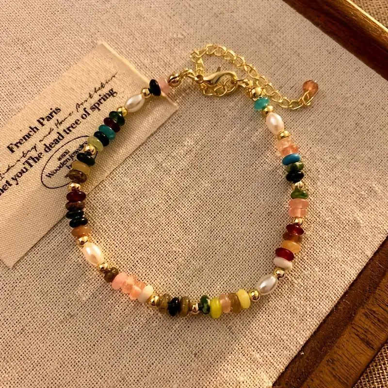 Bohemian Vintage French-Inspired Necklace - Freshwater & Multicolor Natural Stones with Golden-Tone Clasp, Layered Beaded Chain for Everyday or, Year-Round Wear Gift6Gift