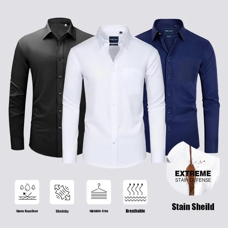 📌 Product Overview Discover the 3-Pack Alimens & Gentle Stain Shield Dress Shirts for Men. These slim fit, long sleeve button-down shirts are perfect for formal, business, casual, weddings, parties, work, and street wear. Wear them with confidence knowing they are stain-proof. 🌟 📌 Material Details 📌 Key Features
