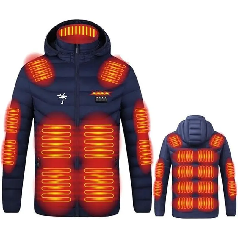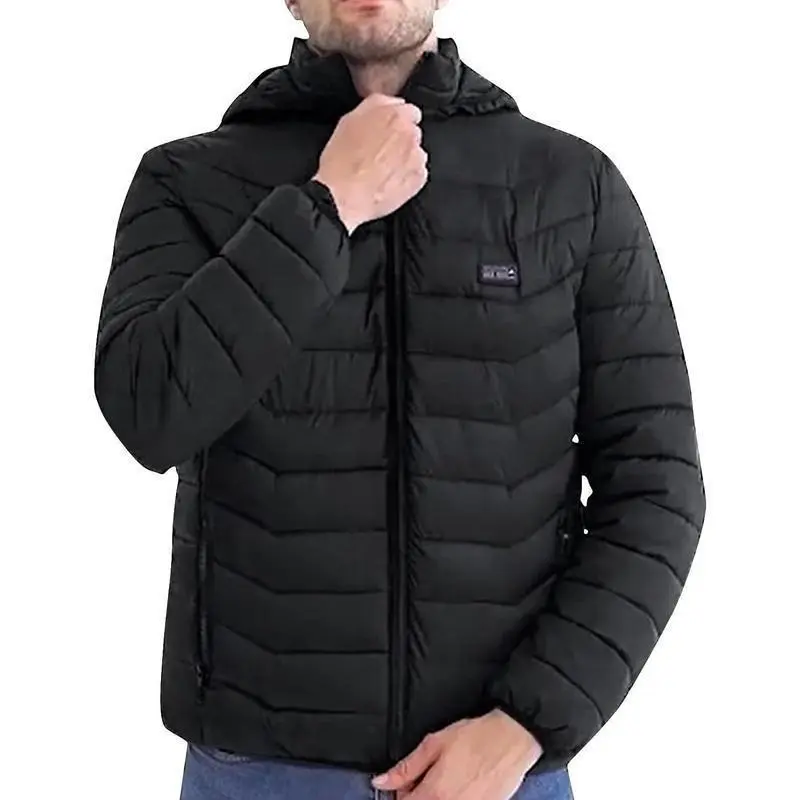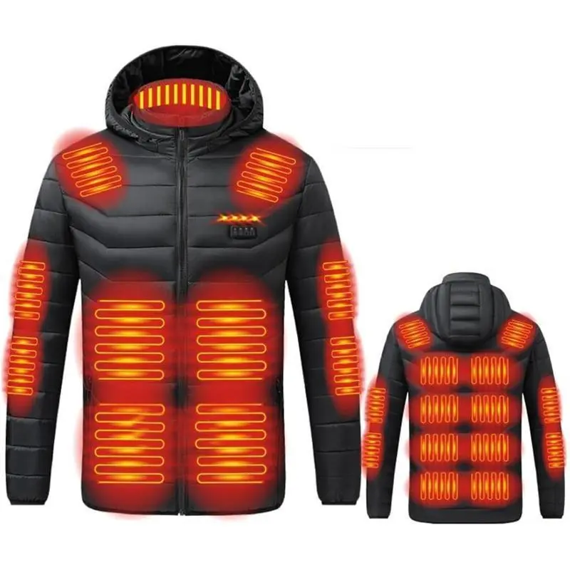 Heated Jacket for Men Women 21 Zones USB Charging Body Warmer Soft Puffer Coat Windproof High Neck Long Outdoor Casual Fashion Shell Blazer Breathable Cotton Black