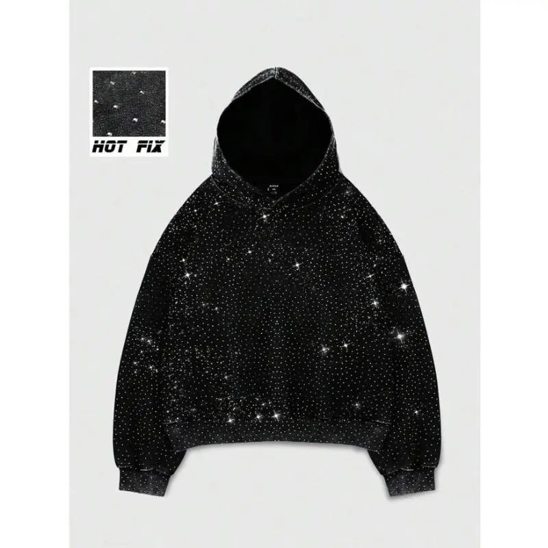 Fabric: Made from soft and cozy fabric for warmth and comfortFeature: Mens hoodies, drop shoulder, long sleeve, rhinestone, bringing a fashionable edge to your everyday wearOccasion: Ideal for streetwear, casual outings, music festivals, cozy days, hanging out with friends, and adventuresMatch: Pairs well with high-waisted jeans, joggers, or skirts for a stylish and trendy lookSize recommendation: Please refer to size chart which we provide in our photos (The product measurement is clothes size, NOT body measurement) Size Chart:(Product Measurement) This data was obtained from manually measuring the product, it may be off by 1-2 CM