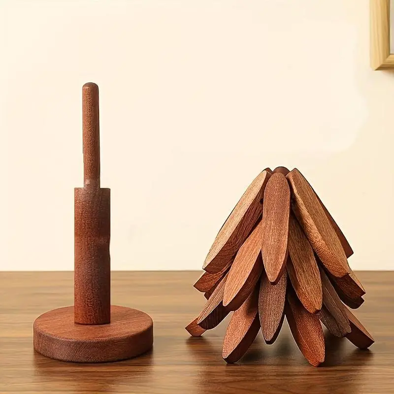 ??Natural Material??: Crafted from high-quality wood, ensuring durability and a rustic charm that enhances any table setting. ??Set of Four??: Includes four trivets, providing ample protection for your surfaces while entertaining or cooking. ??Foldable Design??: Features a foldable structure for easy storage, maximizing space in your kitchen or dining area. ??Heat Resistant??: Designed to withstand high temperatures, protecting your countertops from hot dishes effectively. ??Functional Stand??: Comes with a convenient stand, keeping your trivets organized and easily accessible when needed.