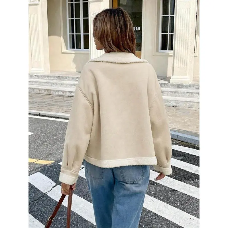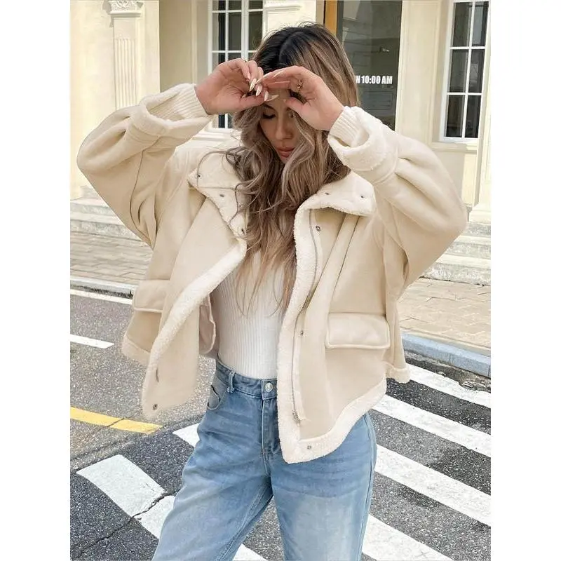 ��Loose fit��: Designed with a loose-fitting structure for ample mobility and a relaxed appearance, enhancing wearability. ��Warm materials��: Crafted from high-quality faux fur and lamb wool for warmth during the fall and winter seasons. ��Practical pockets��: Equipped with side pockets for easy access to essentials, combining functionality with a modern look. ��Zipper closure��: Features a decorative zipper for a secure closure, adding an extra detail to this bomber jacket style. ��Distinctive collar��: Includes a large lapel that enhances the overall silhouette, giving a notable touch to your outerwear.