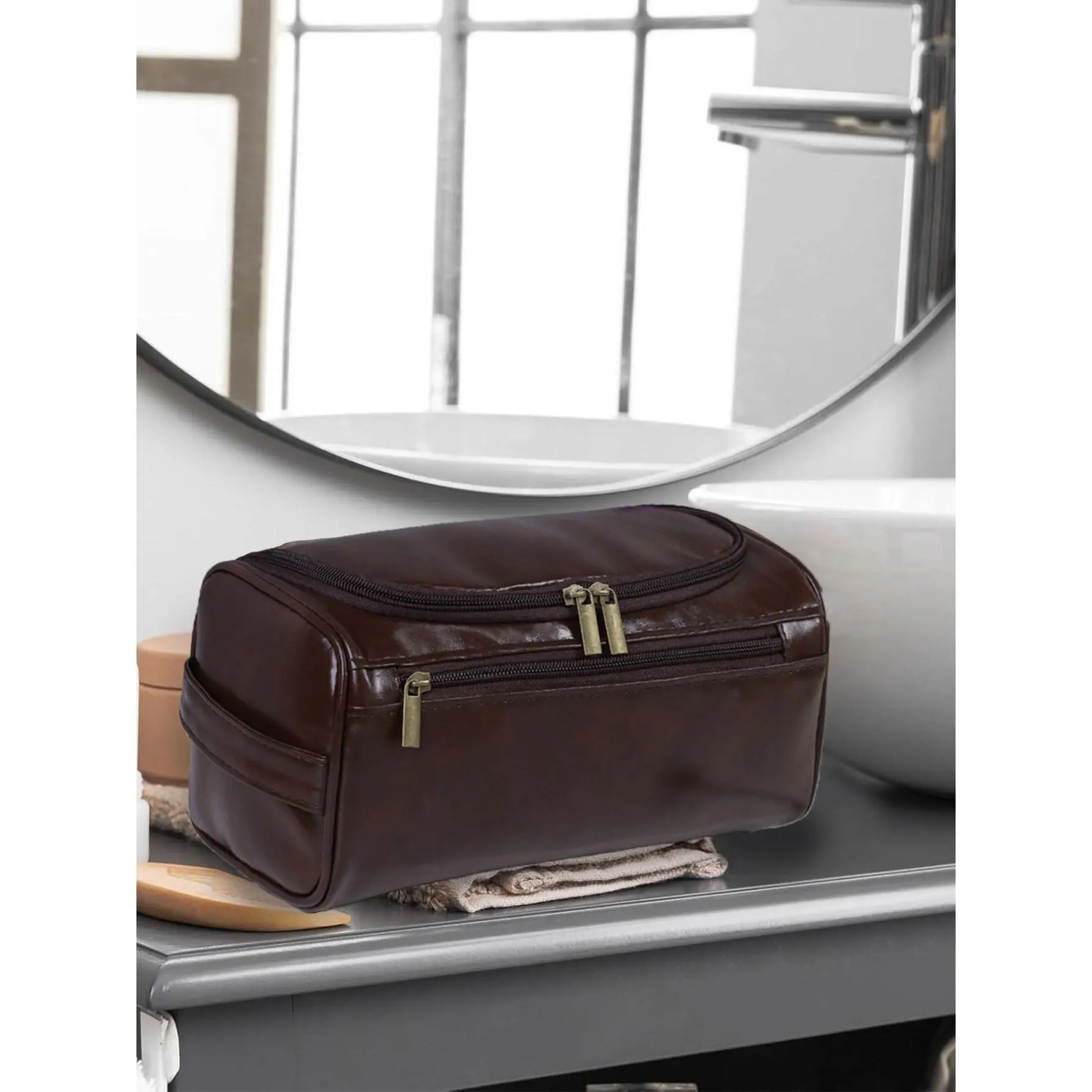 Multifunctional Toiletry Bag for Men, Hanging Travel Shaving Dopp Kit for Men and Women, Water-resistant Toiletries Organizer Bags, PU Leather Cosmetic Bags for Makeup Accessories Toiletry Bag for Groomsman, Anniversary Gift, Perfect Gift For Him (Brown)