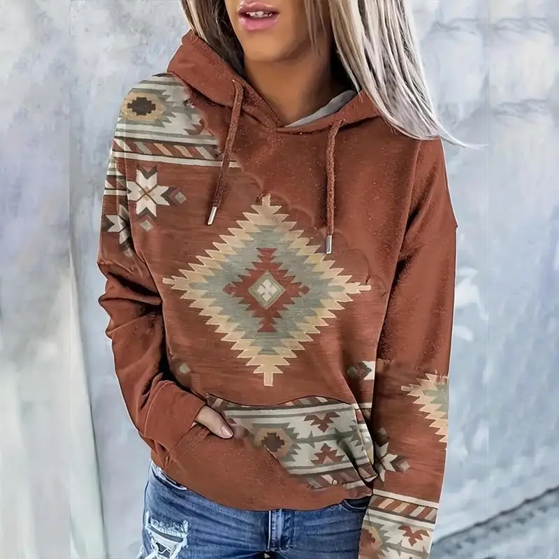 Women's Western Ethnic Style Print Aztec Hoodie/Material: High-quality composite fabric(Polyester and Cotton ). Lightweight, smooth soft and lightweight./Tribal Aztec Turquoise Horse/Feature: Geometric horse print, western ethnic style, long sleeves, color block, pullover hooded sweatshirt with pockets./Occasion: This aztec hoodie is suitable for spring, fall, and winter. it is the perfect choice for daily wear.