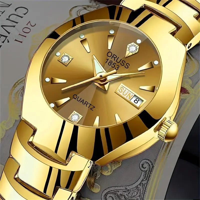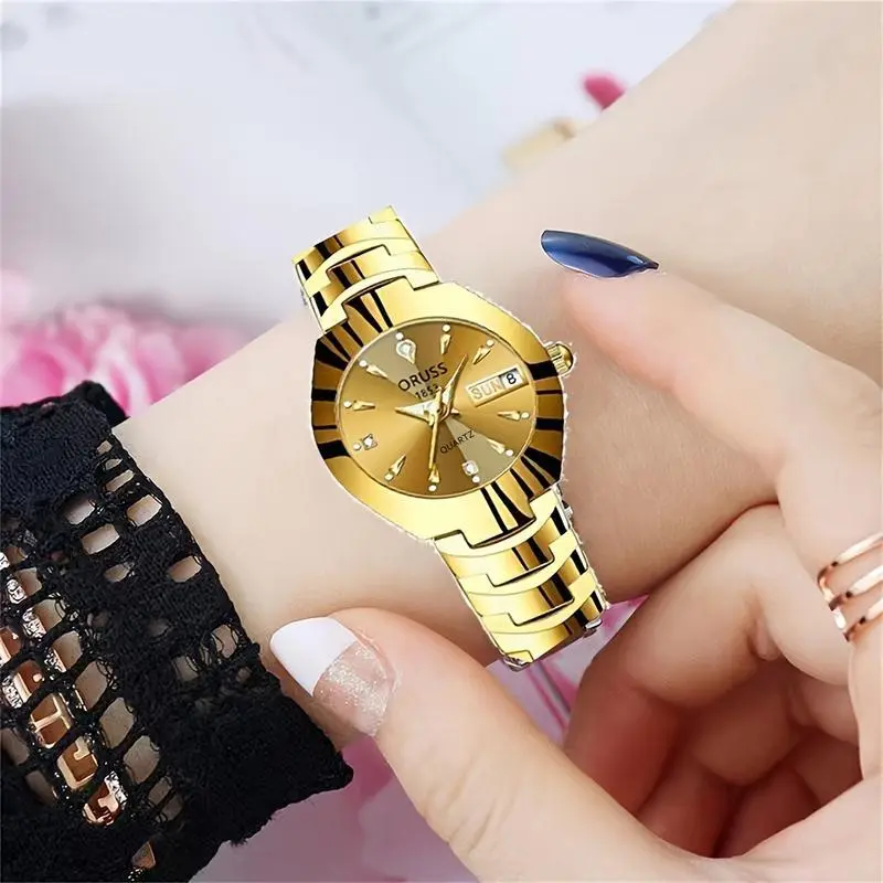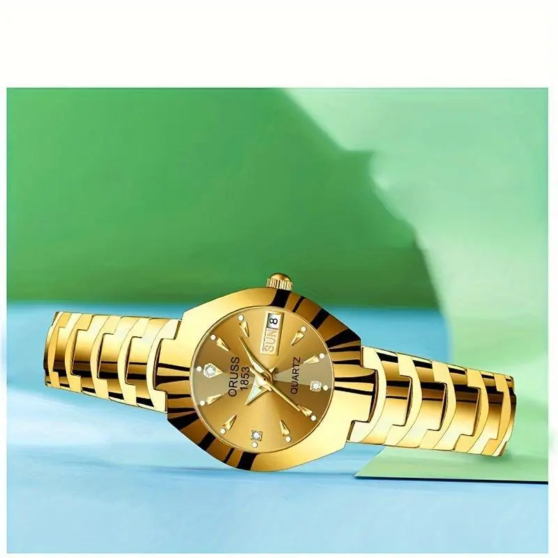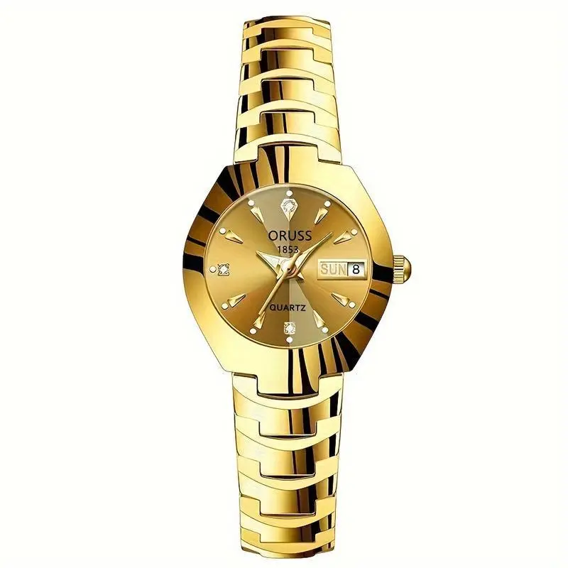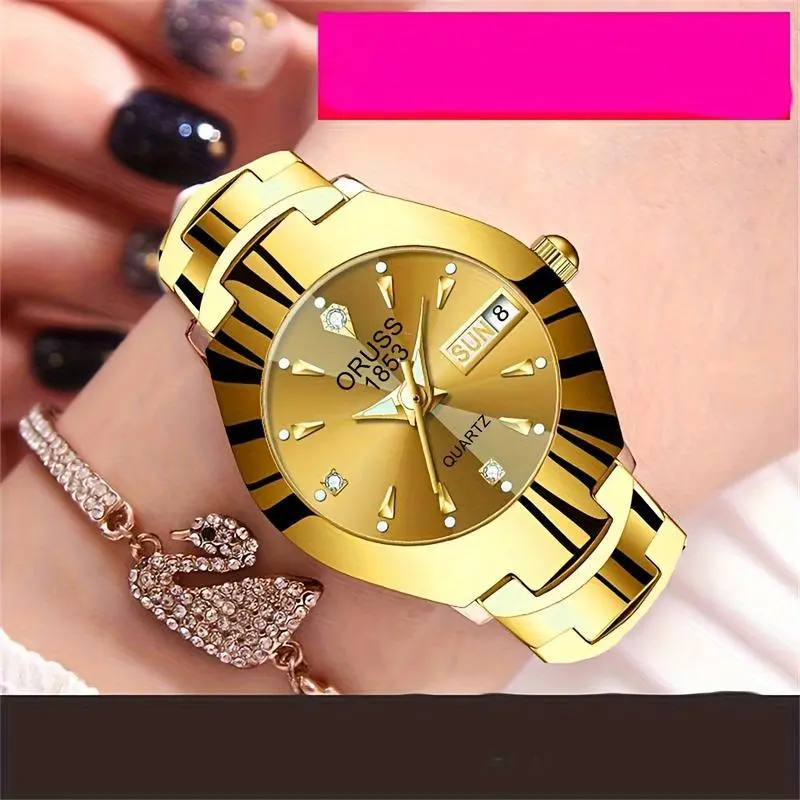 Women's Watch Luxury Rhinestone Quartz Watch Golden Fashion Analog Calendar Wrist Watch Date WatchGift