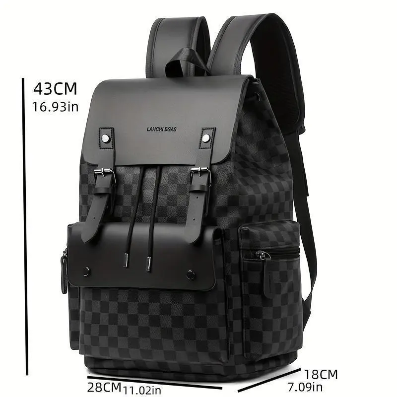 Men's Checkered Backpack - Large Capacity Laptop Bag with Adjustable Padded Straps, Multiple Compartments & Zipper Closure for Commuting, Office, Business Travel, Laptop Storage Bag | Stylish Men's Backpack | Professional Look Bag bjj gearGift