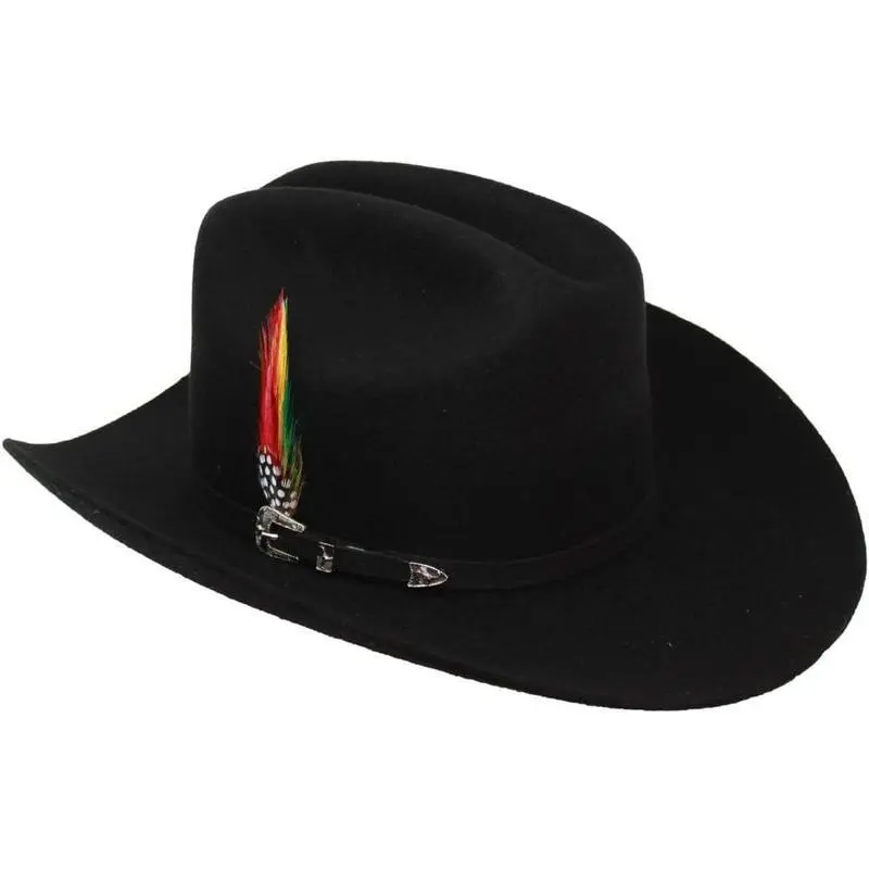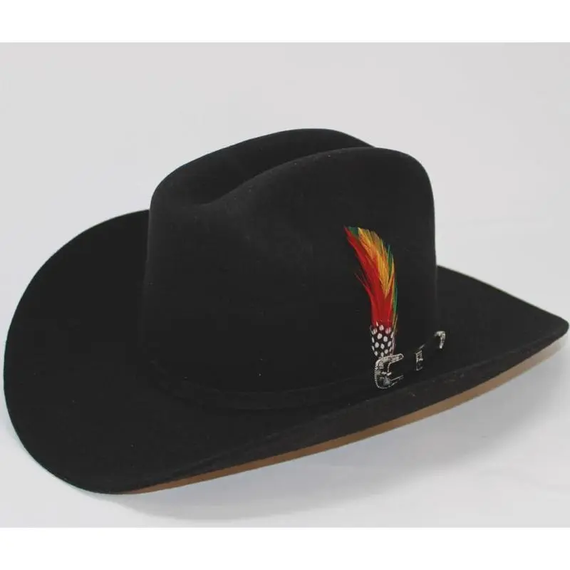 Handcrafted Crown 4 1/2" Brim 3 1/2" Sinaloa Panter Belico Style (Chaparral) with Feathers Quality 6X of Finest Original Box Included Made in Mexico Product Description This beautiful Cuernos Chuecos brand Cowboy Felt Hat, is an excellent choice for lovers of Western style. Made in 6X quality with a that stands out greatly, a true work of art. The fine used for its manufacture is soft to the touch and warm in the winter, and Its 4 1/2" crown and 3 1/2" brim give it a shape for the classic Sinaloa style.