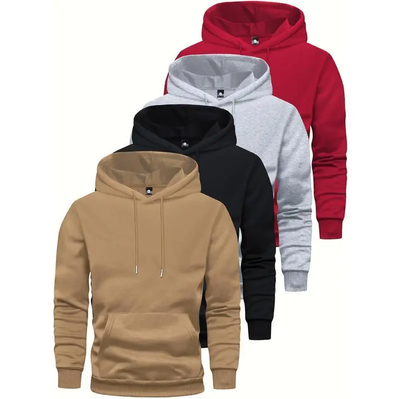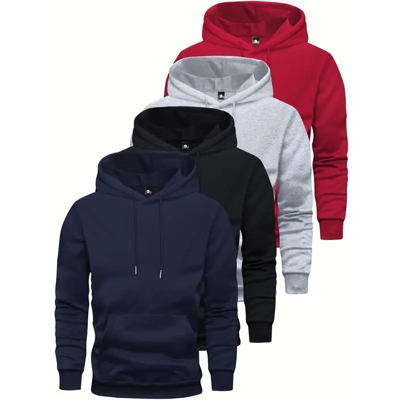 4 PCs Men's Solid Color Hoodie with Kangaroo Pocket, Casual Long Sleeve Hooded Sweatshirt for Outdoor Use