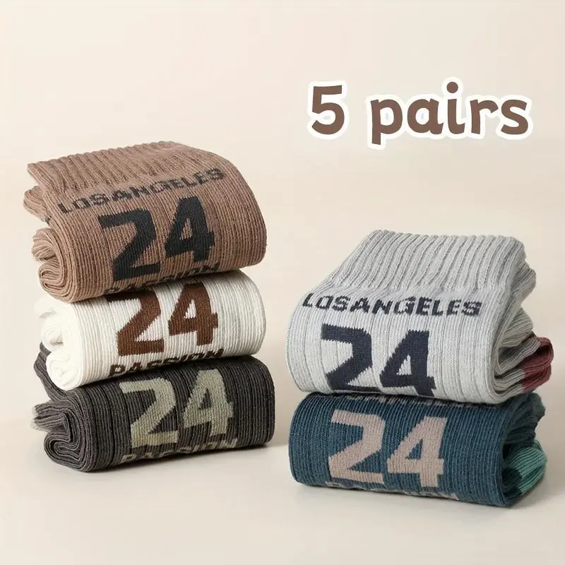 A pair is given as a random gift 5 Pairs Boys' Stylish Crew Socks - Breathable and Comfortable Polyester Blend Material with Geometric Pattern for All SeasonsGift