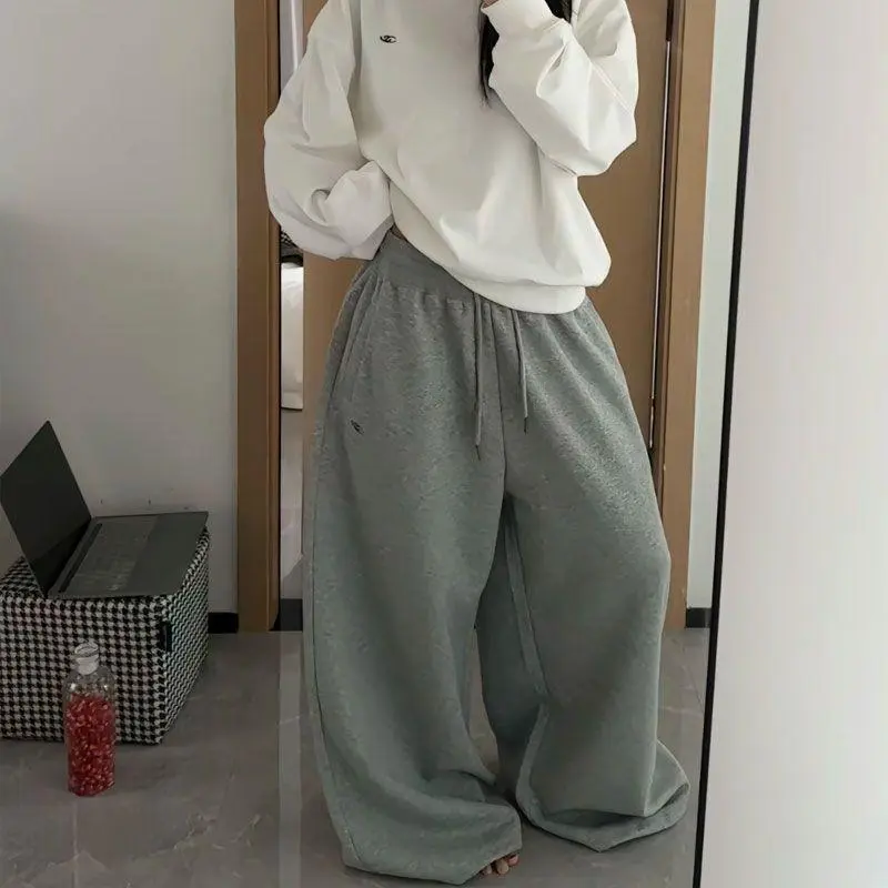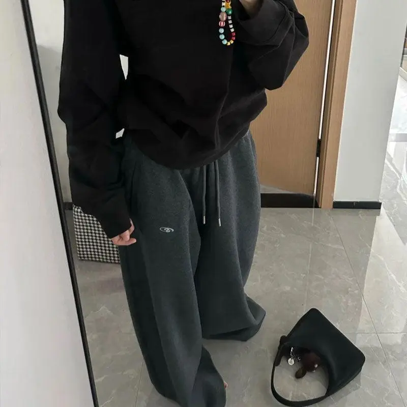 Oversize Cotton Woman Black Sweatpants Y2K Korean Streetwear Loose Casual Jogger Pants High Waist All Match Drawstring Trousers