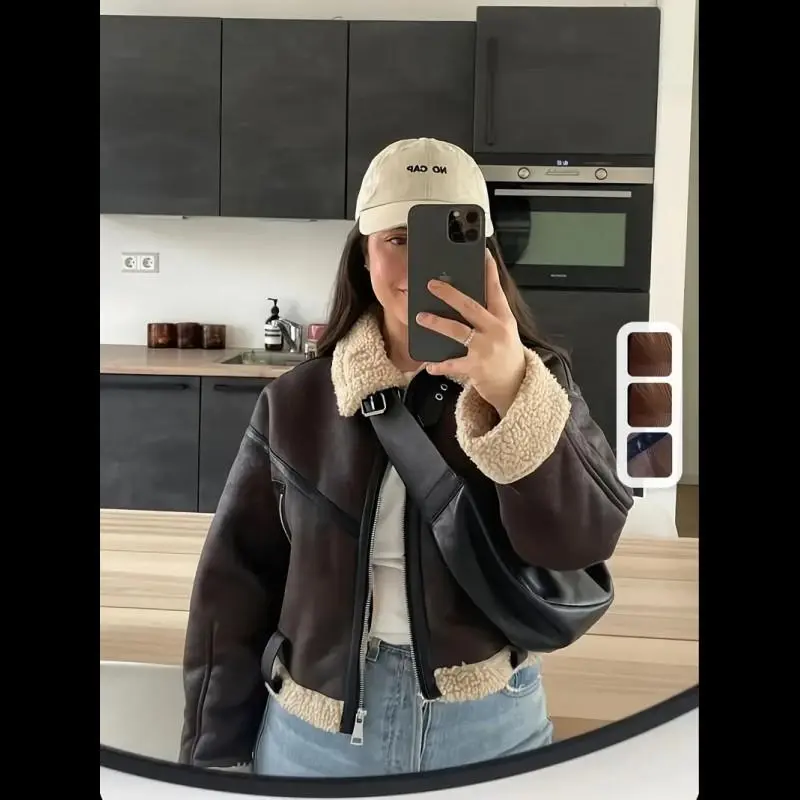 RARF 2024 New Woman's Fashion Thick Warm Faux Shearling Jacket Coat Vintage Long Sleeve Belt Hem Female Outerw Womenswear Tops Outerwear Casual Brown puffer jacket winter clothes women winter coats women