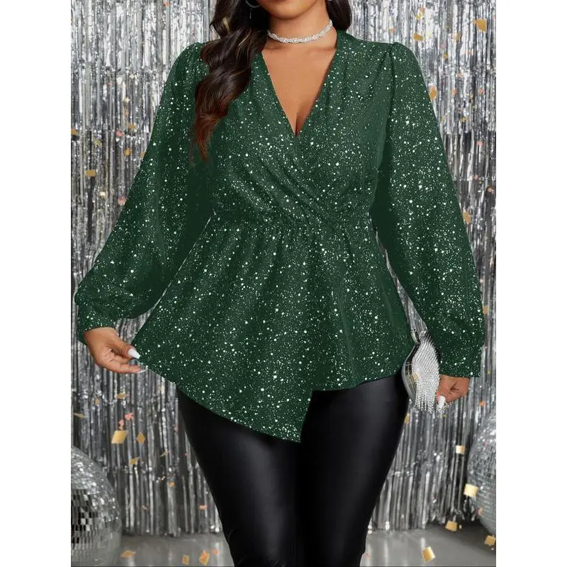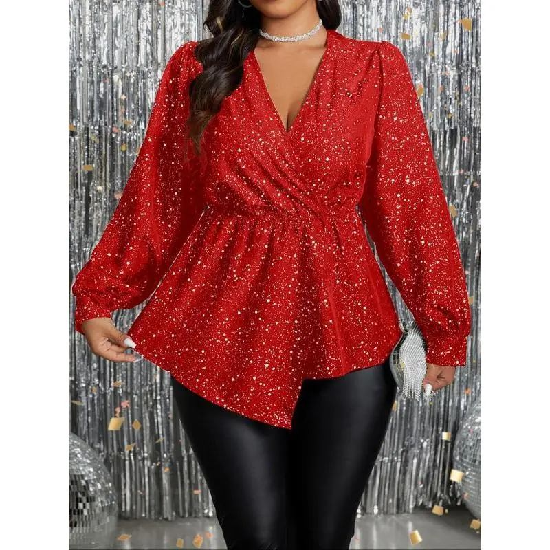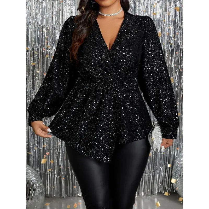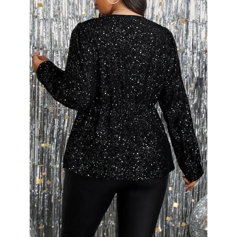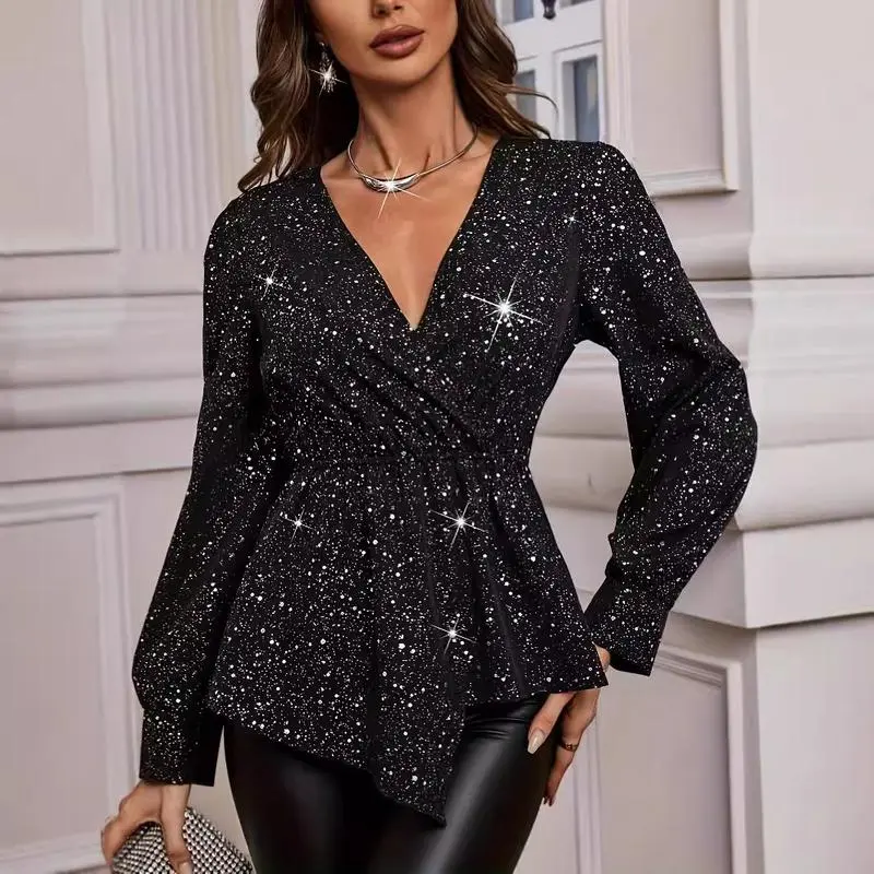??Deep V Neckline??: Featuring a striking deep V neckline that enhances your silhouette and adds a bold touch to your look. ??Shimmering Sequins??: Adorned with eye-catching sequins for a glamorous shine, making this top perfect for parties and special events. ??Slim-Fitting Cut??: Designed with a slim-fitting cut that highlights your body shape while providing a flattering appearance. ??Star Pattern??: Showcase your individuality with a unique star pattern, adding a fun and playful element to your party attire. ??All-Season Wear??: Crafted for all seasons, this top effortlessly transitions between events, ensuring you look fabulous year-round.