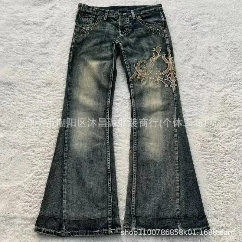 Y2g Harajuku Vintage American Jeans Men Gothic Hip-Hop Street Casual Loose Blue Jeans New Fashion All-Match Flared Jeans Streetwear Bottom Menswear Denim Plain Pocket Trouser