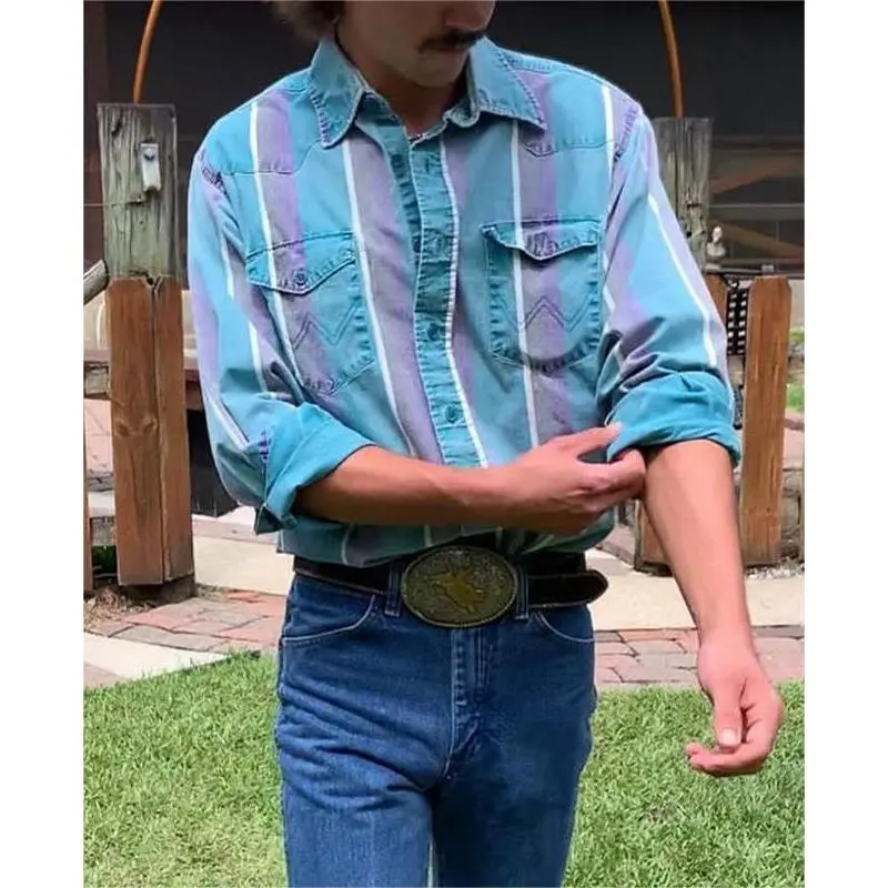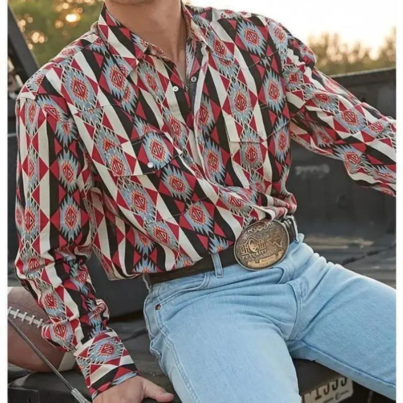 CasualAztecPrintWesternMen'sLongSleeveShirtVintageMen'sCasualMexicanCowboyPoloShirtMensTopsBlouses & Shirts