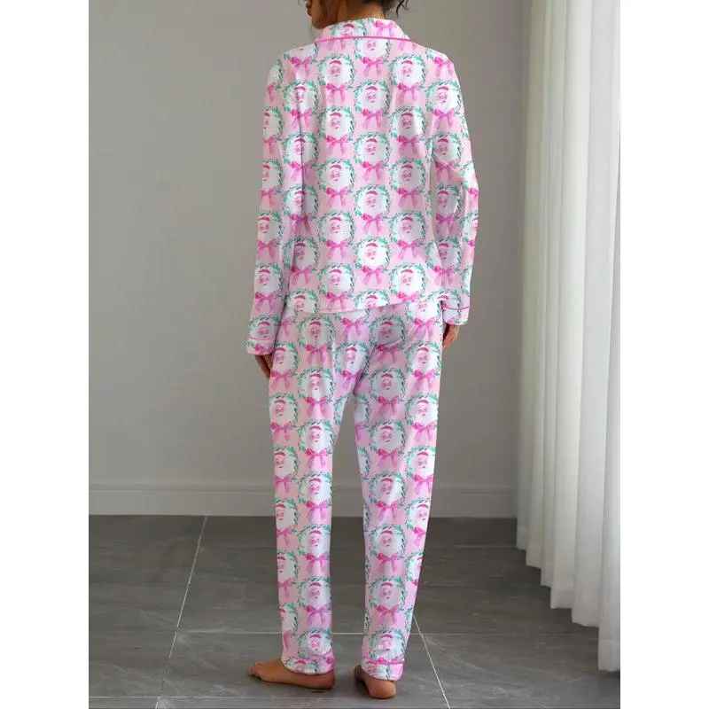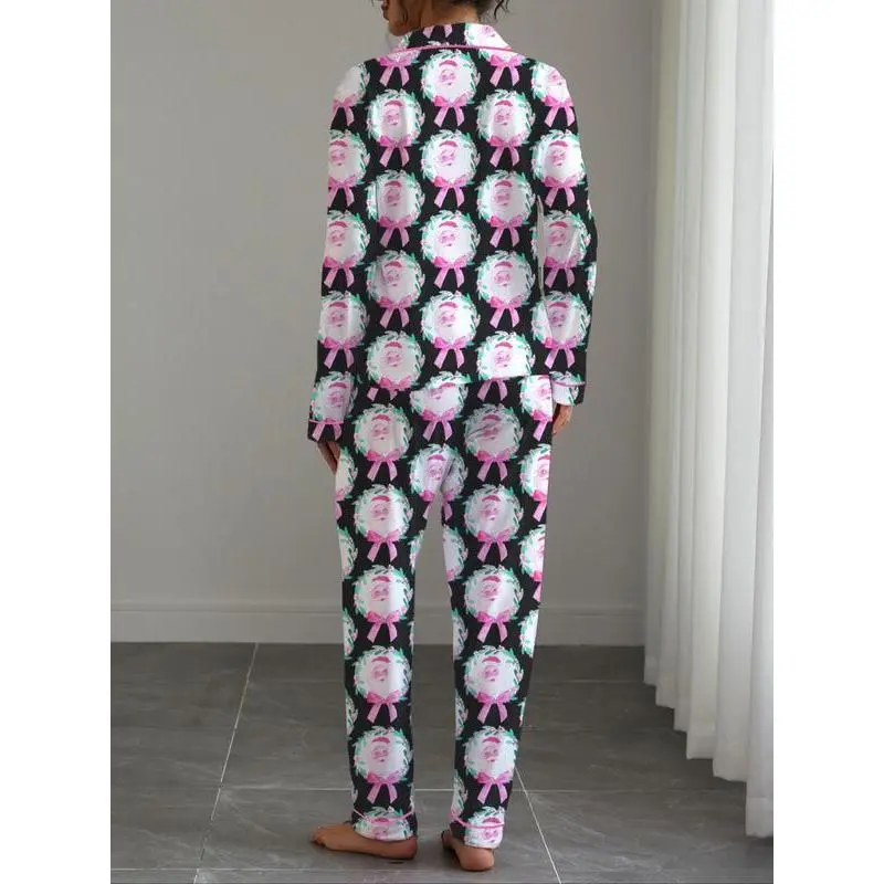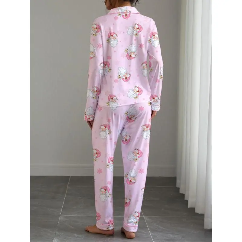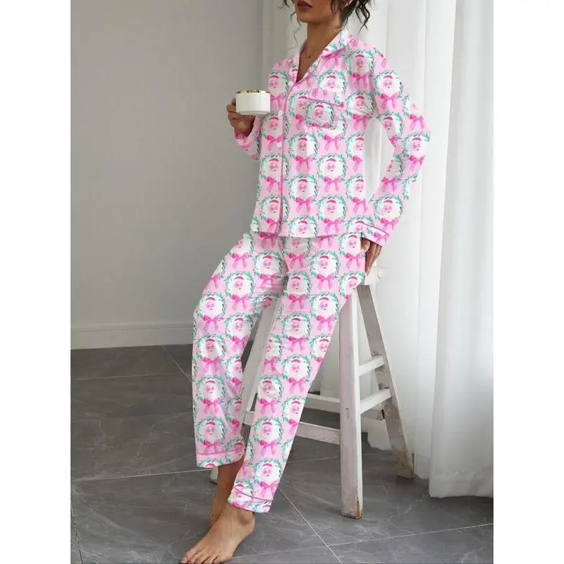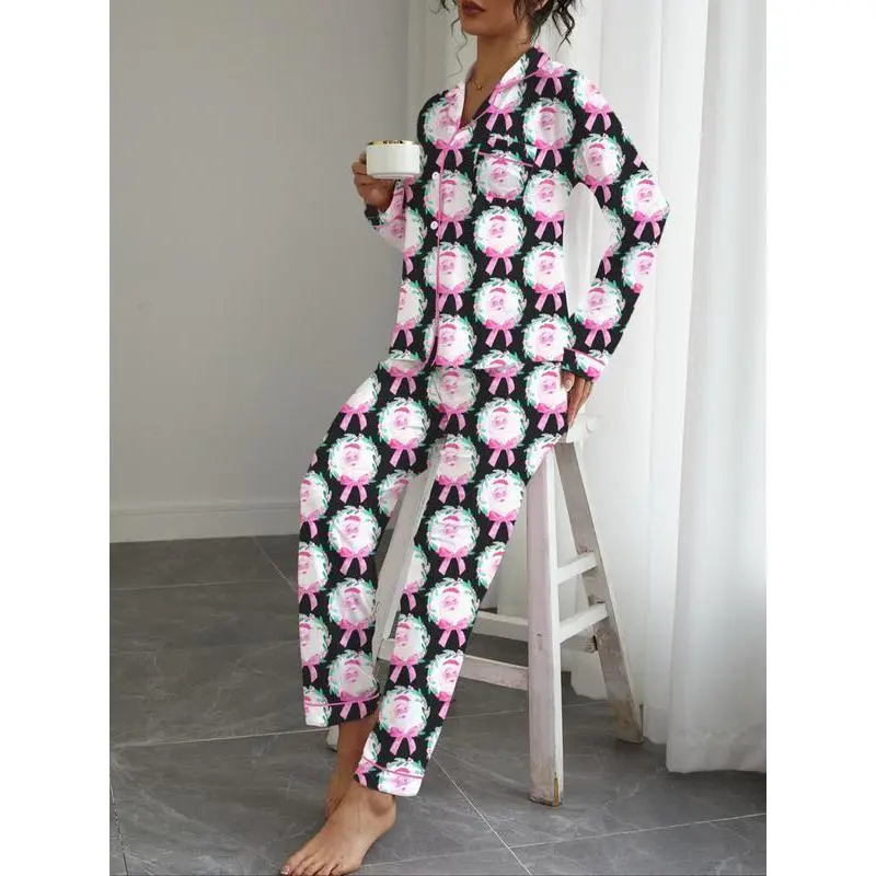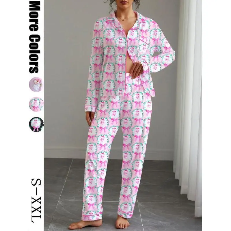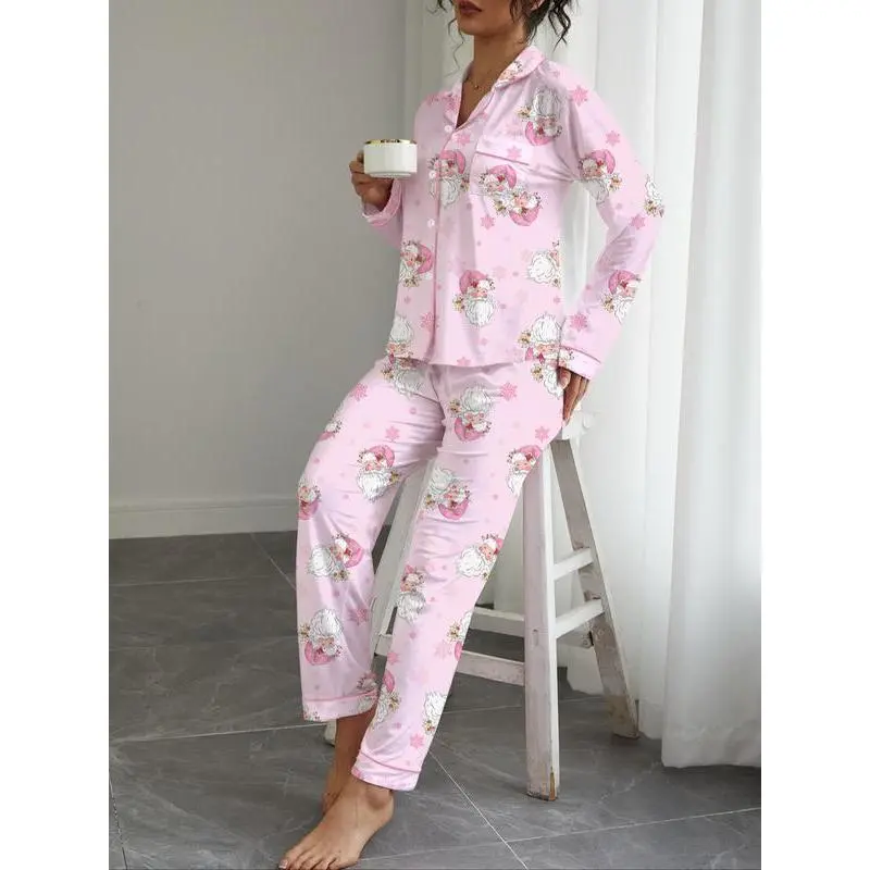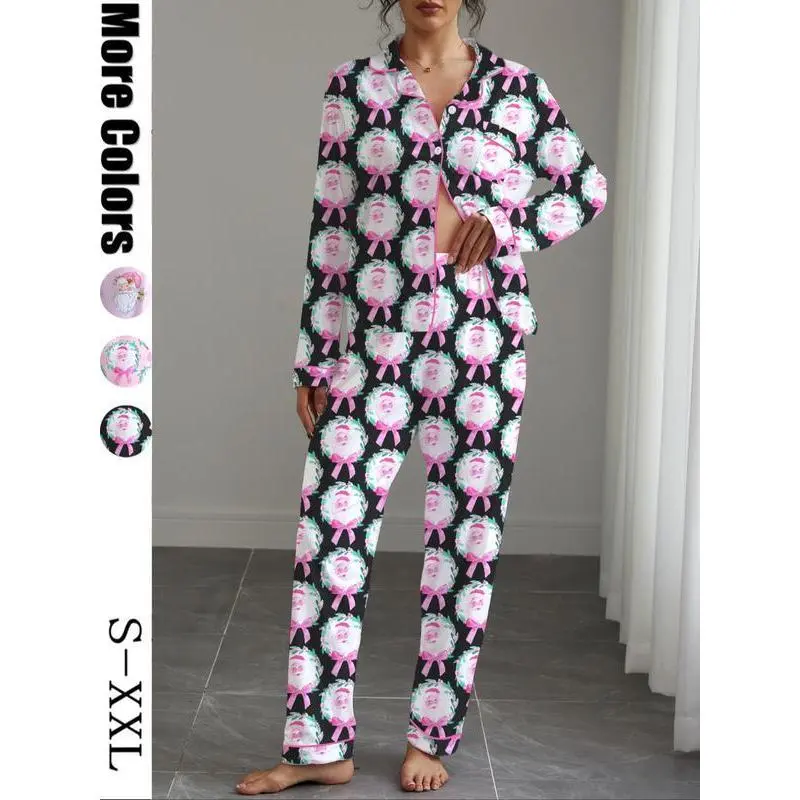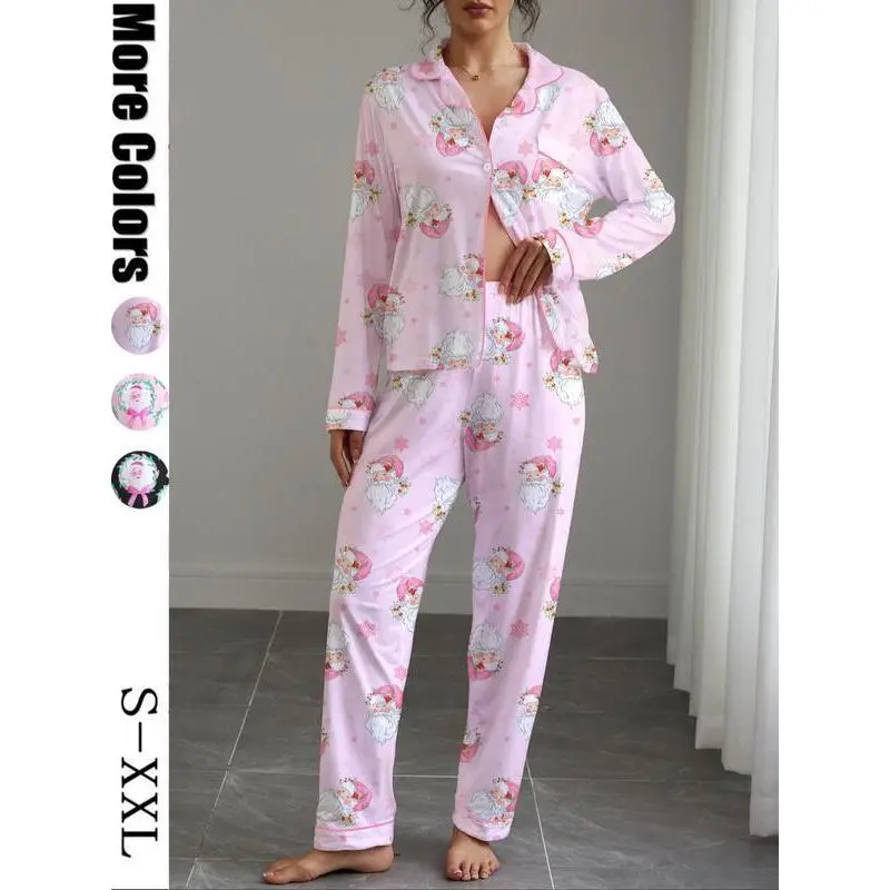 【Seasonal Print】: Features a unique Christmas-themed print, perfect for festive occasions and holiday celebrations. 【Soft Fabric】: Crafted from a soft and stretchy fabric, ensuring a gentle feel against the skin during regular wear. 【Two-Piece Set】: Includes both a long-sleeve button-up shirt and flexible pants, providing a complete lounging outfit. 【Moderate Thickness】: Designed with moderate fabric thickness, suitable for both warmth and breathability during fall and winter. 【Fitted Fit】: Offers a fitted silhouette that enhances the overall appearance while ensuring ease of movement.