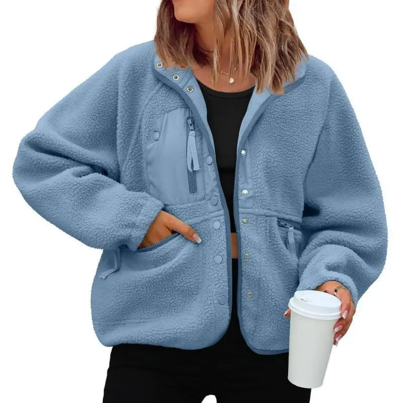 Women’s Lightweight Fleece Pullover Jacket Cropped Fall Winter Fuzzy Sherpa Jacket Sweatshirt Coat with Pockets(gift)Gift
