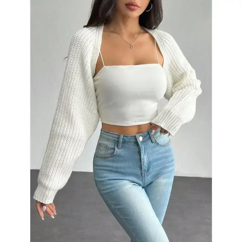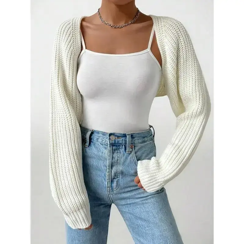 Women's Ribbed Knit Shrug Crop Cardigan – Balletcore Style Raglan Sleeve Sweater for Layered Outfits, Fall or Spring Wear Tops White Casual Knitwear Womenswear Basic Minimalist Short Knitting Fabric Can be used with a raincoat