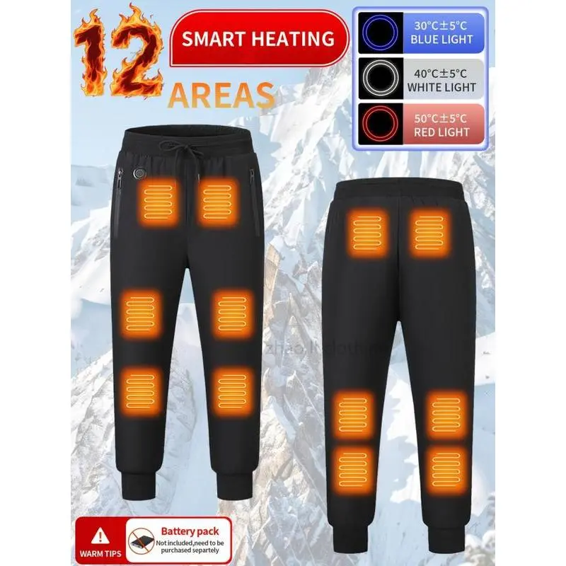 【Heat Zones】: Equipped with 12 heating zones, these pants efficiently retain body heat, providing extra warmth during winter activities. 【Adjustable Fit】: Features a drawstring waist for an adjustable fit, allowing users to customize personal comfort and security. 【Convenient Storage】: Includes zipper pockets for secure storage of essentials, combining practicality with the need for mobile convenience. 【Long Length】: Designed in a long pant length, offering enhanced warmth and coverage for colder weather conditions. 【Plain Pattern】: Crafted with a plain pattern, ensuring a clean and unobtrusive look suitable for various settings while staying functional.