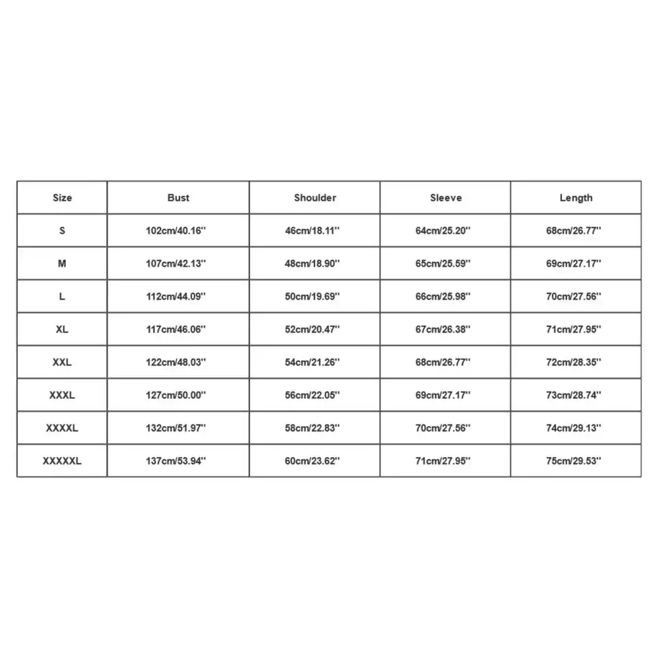 Winter Warmth Hoodie: Unisex Heated Winter Coat 🌟 Product Highlights 📦 Product Content 📏 Size Chart | Size | Bust | Shoulder | Sleeve | Length | |------|------|----------|--------|--------| | S | 106cm | 46cm | 64cm | 68cm | | M | 111cm | 48cm | 65cm | 69cm | | L | 116cm | 50cm | 66cm | 70cm | | XL | 121cm | 52cm | 67cm | 71cm | | XXL | 126cm | 54cm | 68cm | 72cm | | XXXL | 131cm | 56cm | 69cm | 73cm | | XXXXL| 136cm | 58cm | 70cm | 74cm | | XXXXXL| 141cm | 60cm | 71cm | 75cm | 📌 Important Notes 📸 Product Image This winter warmth hoodie is a versatile, casual option for men. Made from polyester fiber, it offers comfort and durability. Perfect for daily wear, work, dates, parties, travel, and shopping. The detachable hat and button collar add to its functionality. Available in various sizes, ensure you check the size chart before ordering.
