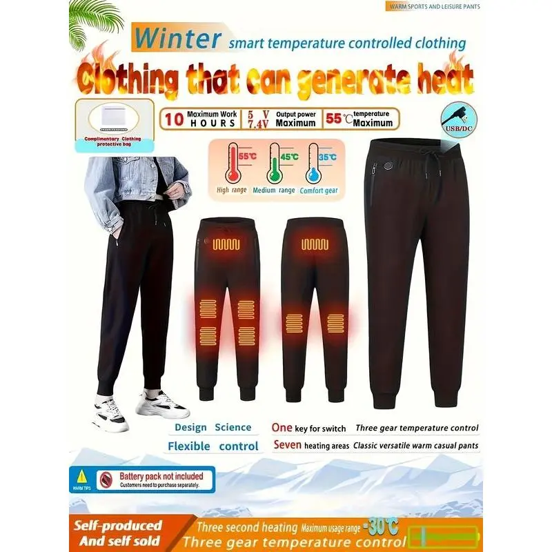 【Heat Zones】: Featuring 12 heat zones, our product ensures targeted warmth distribution across key areas. 【Smart Control】: Experience intelligent heating control through a dedicated app, enhancing convenience and customization. 【Adjustable Waist】: The adjustable drawstring waist provides a personalized fit, ensuring secure wear during activities. 【Long Length】: Designed in a long/regular length, these pants offer ample coverage and warmth for cold weather. 【Practical Pockets】: Equipped with pockets, these pants allow you to carry essentials securely while on the go.