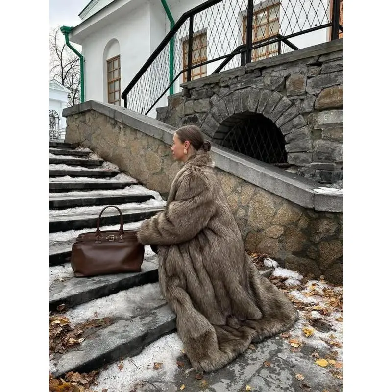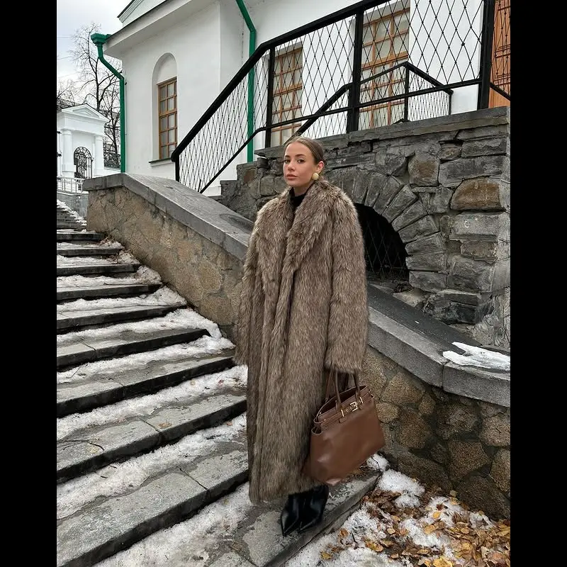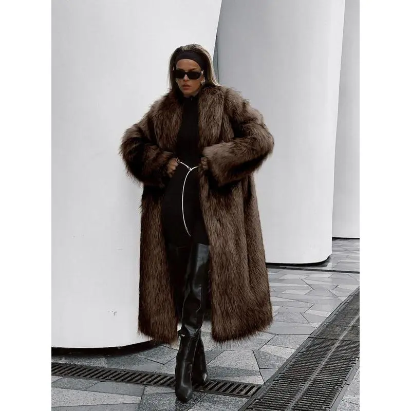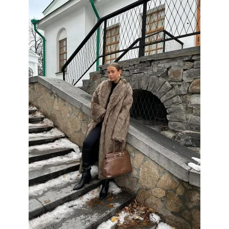 Women's Solid Color Open Front Faux Fur Coat, Elegant Long Sleeve Waterfall Collar Outerwear for Fall & Winter, Women's Clothing for Daily Wear, Clothing for Women��gift�� Garments Jackets