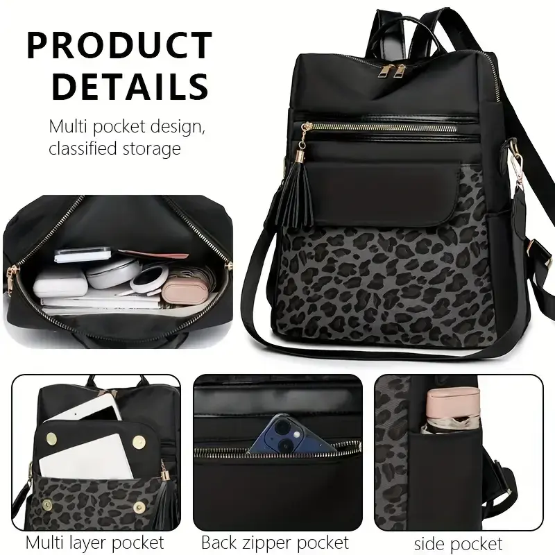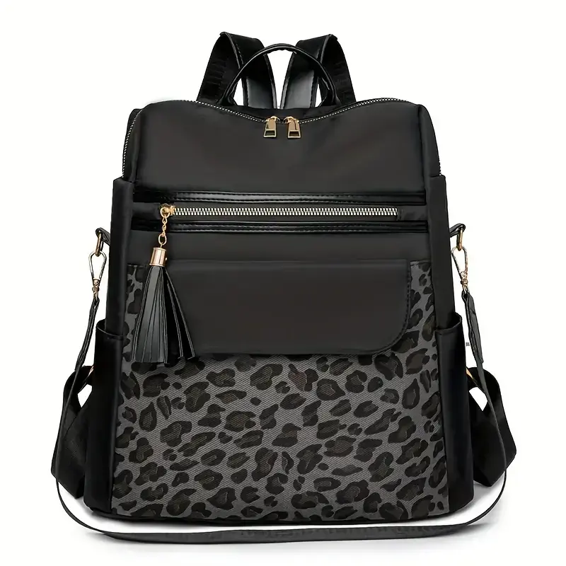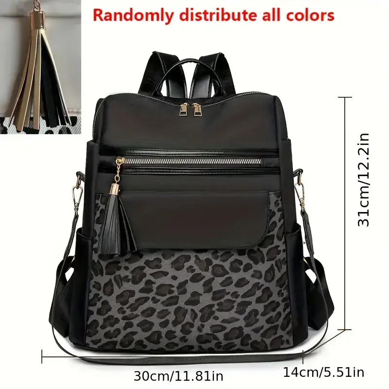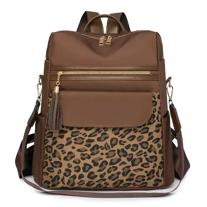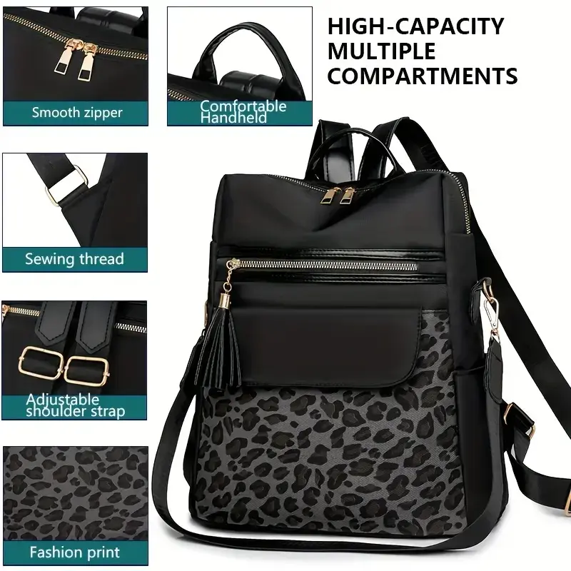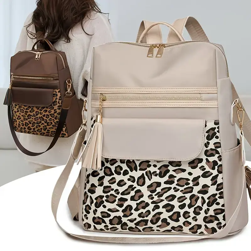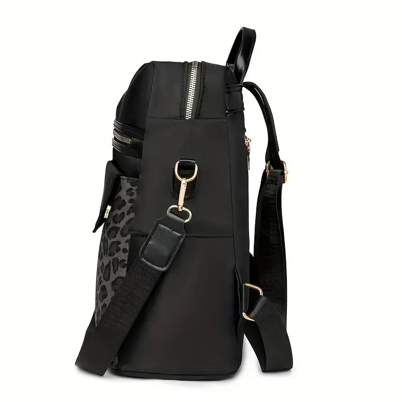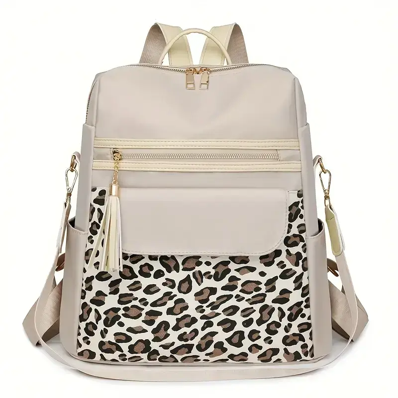 Stylish Leopard Print Backpack with Golden Zippers - Large Capacity Casual Travel Bag with Multiple Pockets, Adjustable Shoulder Straps, and Polyester Lining for Students and Outings