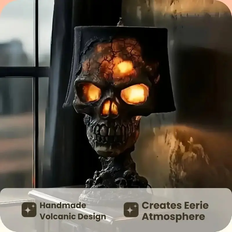 Halloween Lava Skull Lamp – Handmade Volcanic Rock LED Night Light, Spooky Skull Decor for Home, Party & Garden, Creates Mysterious Glowing Atmosphere, Unique Mood Lighting GiftGift
