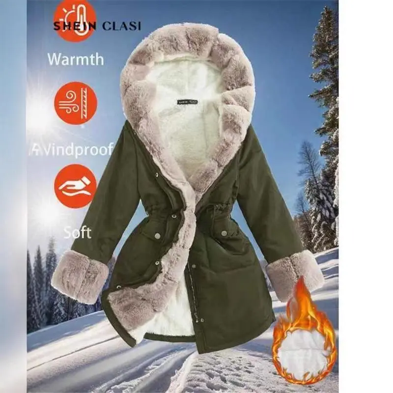 Cotton-padded Winter Women's Warm Coat Hooded Overcoat Fur Collar Cotton Jacket W384 detachable hood Long Sleeve Outerwear Fitted Basic Womenswear Tops