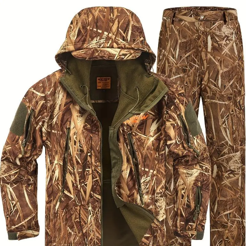 Hunting Clothes Men, Quiet Camo Hunting Jacket And Pants, Water Resistant Hunting Suit Deer Duck Bow Hunting