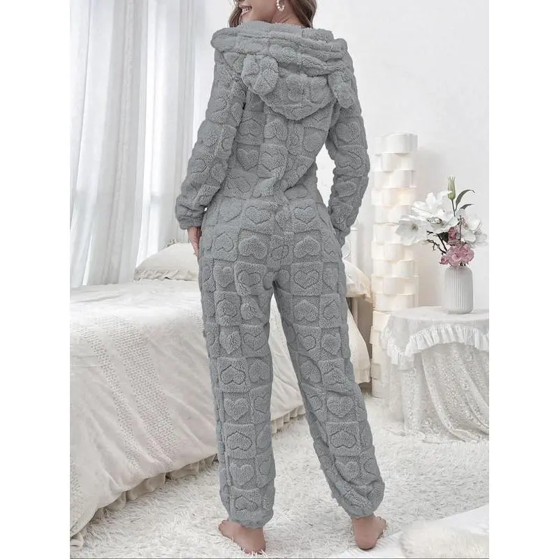 Women's Heart Jacquard Sleep Jumpsuit ✨ Elevate your loungewear with this Women's Heart Jacquard Zip Up Hooded Sleep Jumpsuit. Perfect for casual indoor wear, this long sleeve jumpsuit is ideal for fall and winter. The hooded design adds a cozy touch, making it a versatile choice for sleepwear. 🌟 Casual and Comfortable Perfect for Fall & Winter This sleepwear is specifically designed for fall and winter. It's a great choice for indoor wear, offering both style and comfort. Ideal for women looking for a cozy and casual loungewear option. 🍂 This Women's Sleepwear is also a perfect gift for loved ones. It's a thoughtful choice for those who appreciate comfortable and stylish loungewear. 🎁