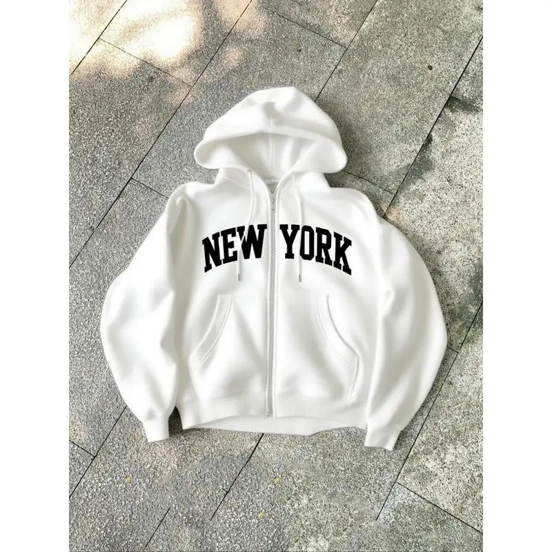 【Graphic Print】: Features a distinct 'New York' graphic print, adding a trendy urban vibe to your look. 【Fitted Cut】: Tailored for a fitted silhouette, enhancing your shape while providing a fashionable edge. 【Zipper Closure】: Equipped with a practical zipper, allowing for easy wear and adjustable ventilation as needed. 【Seasonal Wear】: Designed for the Fall & Winter seasons, providing warmth during colder months without compromising style. 【Premium Material】: Crafted from high-quality fabric, ensuring durability and a comfortable feel against the skin.