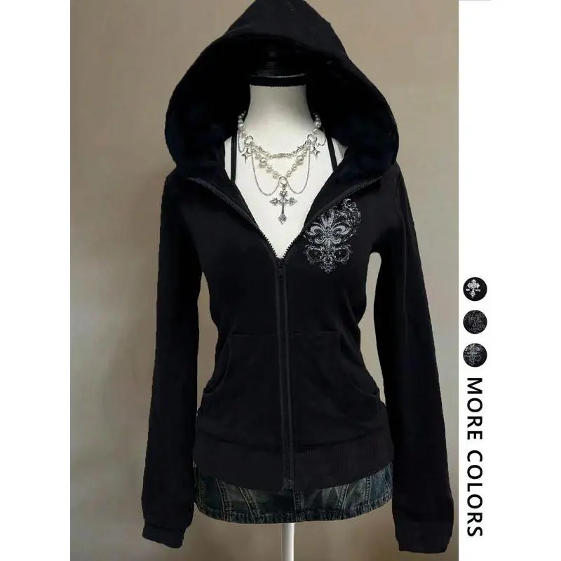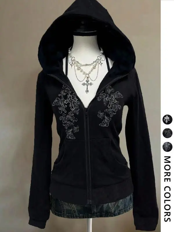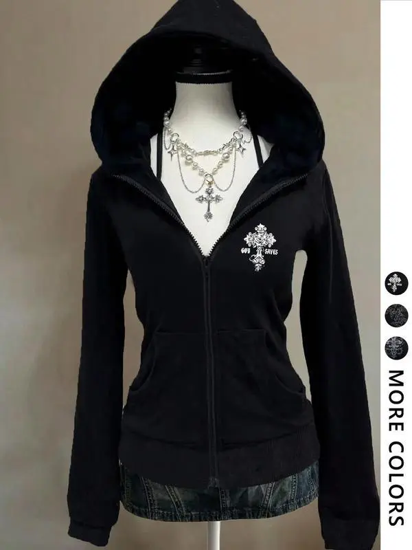 【Unique Graphic】: Features a striking cross print that differentiates it from ordinary hoodies, showcasing an edgy Y2K aesthetic. 【Warm Fabric】: Crafted for autumn and winter wear, this hoodie provides essential warmth while maintaining a fitted silhouette. 【Hooded Design】: Equipped with a spacious hood, this hoodie enhances coverage and adds a contemporary touch to your look. 【Fitted Cut】: Designed with a fitted cut that flatters the body shape, offering a sleek and modern appearance. 【Quality Construction】: Constructed to withstand seasonal wear, ensuring longevity while offering a well-tailored fit and feel.