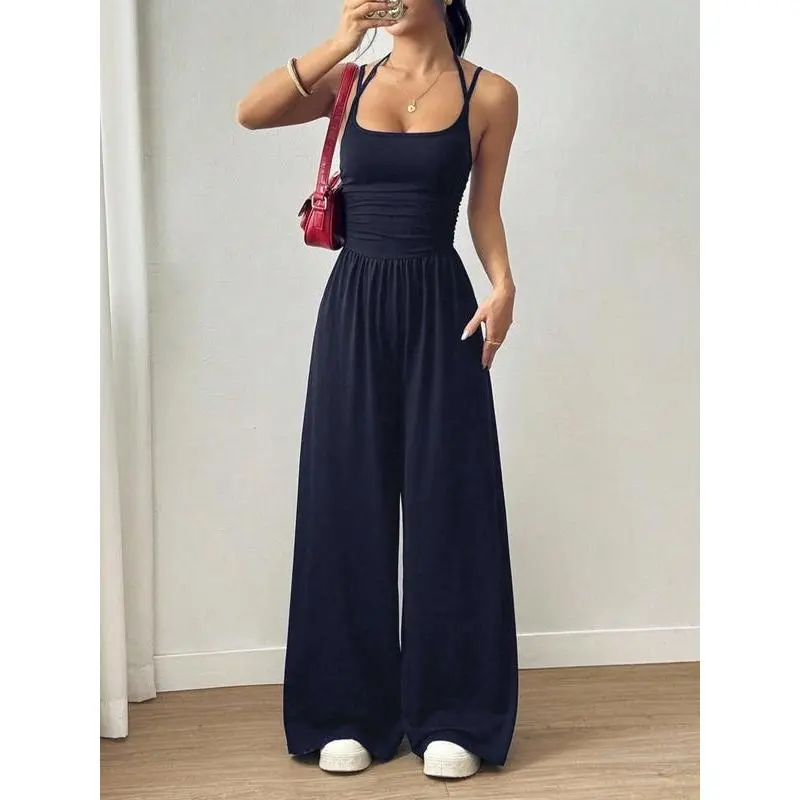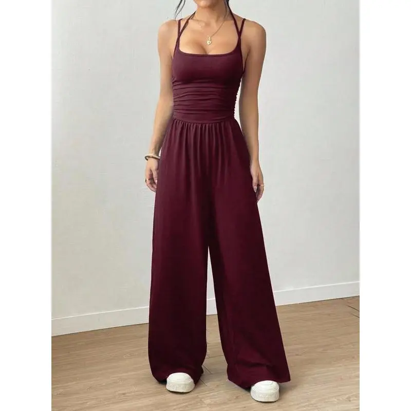 【Tailored fit】: This fitted design contours to your body, offering a sleek silhouette while ensuring ease of movement. 【Plain pattern】: The solid color palette provides a timeless look, easily pairing with any accessory for various occasions. 【All-season wear】: Made for every season, this outfit transitions seamlessly from warm to cool weather, ensuring it's a reliable choice year-round. 【Wrap style】: The unique wrap style adds a distinctive detail to the jumpsuit, creating a flattering shape that enhances your figure. 【Wide-leg pants】: Featuring wide-leg pants, this ensemble offers breathability and a relaxed fit, allowing for freedom of movement.