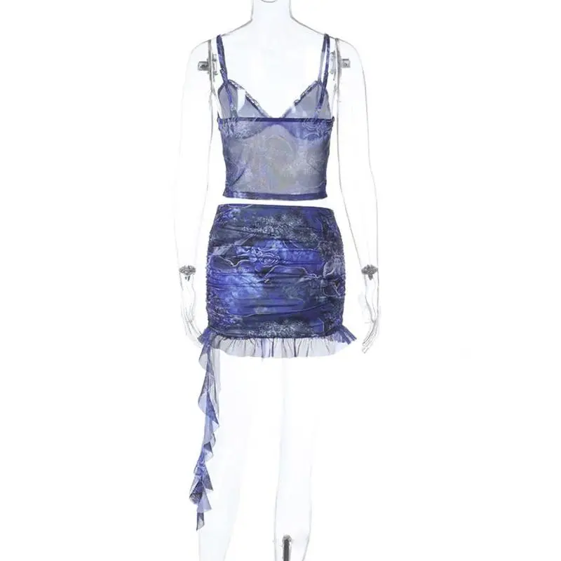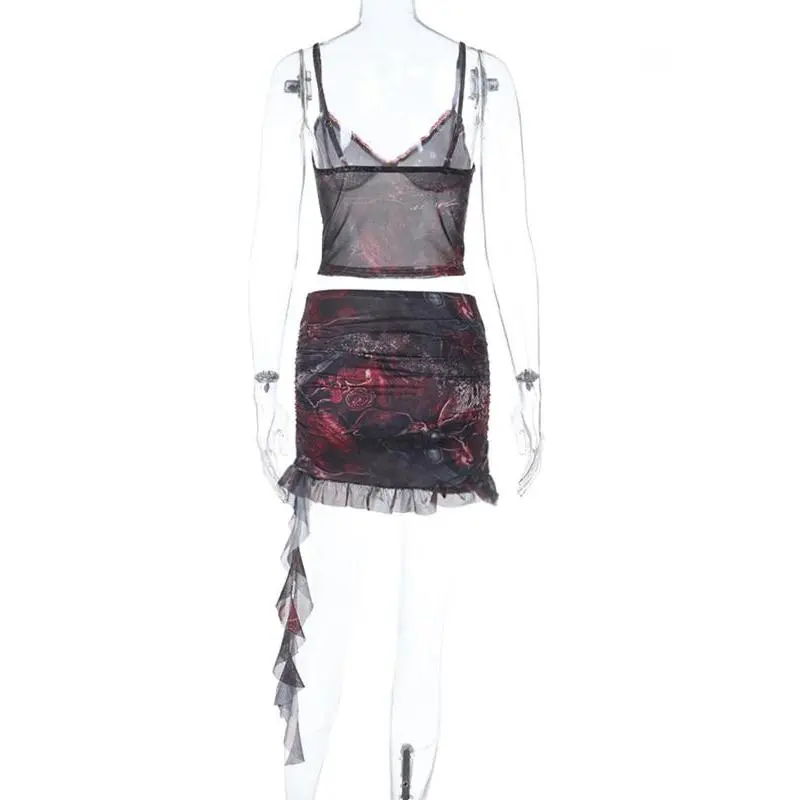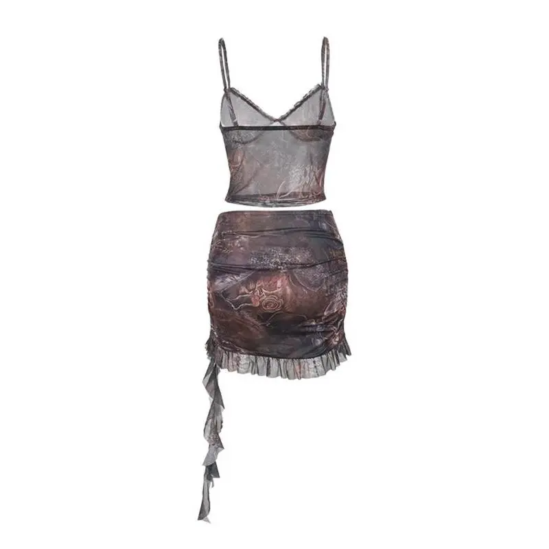Women's All Over Print Sleeveless Spaghetti Strap Crop Cami Top & Skirt Two-piece Set, Casual Fashion Cozy Two Piece Outfits for Daily Outdoor Wear, Ladies Clothes for Summer, Womenswear, Skirtset, Cropped Essential SetsGift
