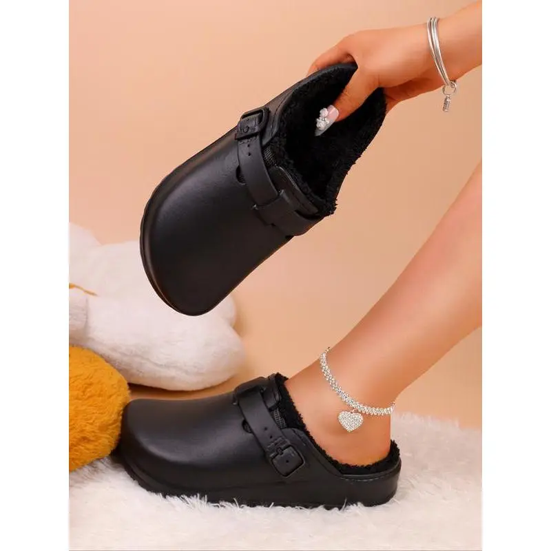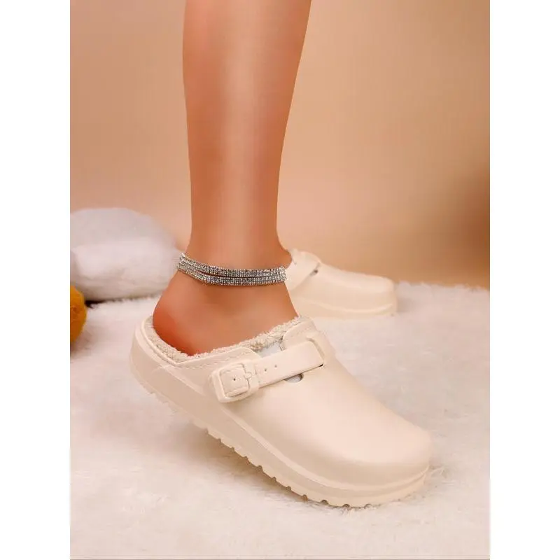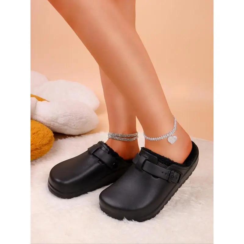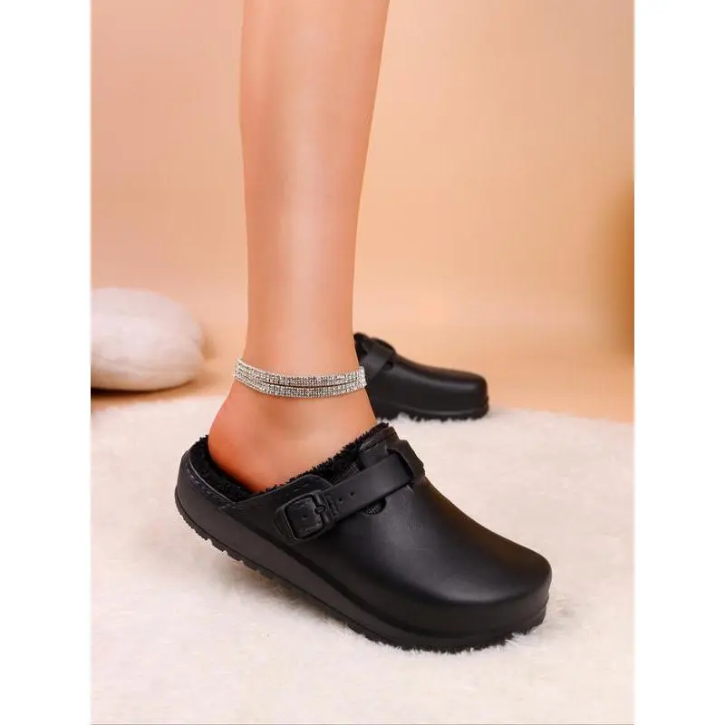 【Premium Materials】: Crafted with lightweight EVA material, ensuring durability while providing a plush inner lining for added warmth. 【Unique Closure】: Featuring an adjustable buckle strap, this shoe allows for a secure fit tailored to your preferences. 【Open Toe Design】: The open toe construction offers breathability, making it suitable for indoor wear during colder months. 【Non-Slip Sole】: Equipped with a sturdy EVA sole, this shoe provides good traction and stability on various surfaces. 【Wooden Base】: Designed with a fashionable wooden base, offering a traditional touch while still being lightweight and easy to wear.