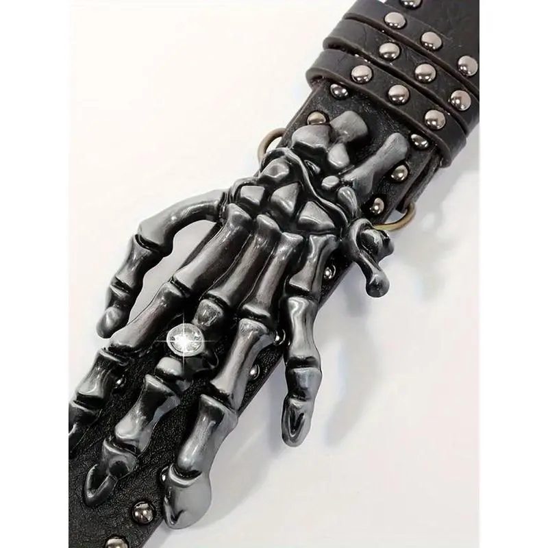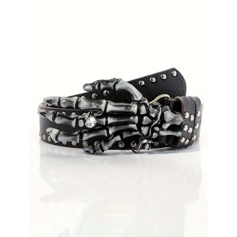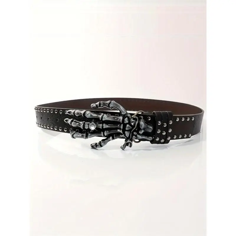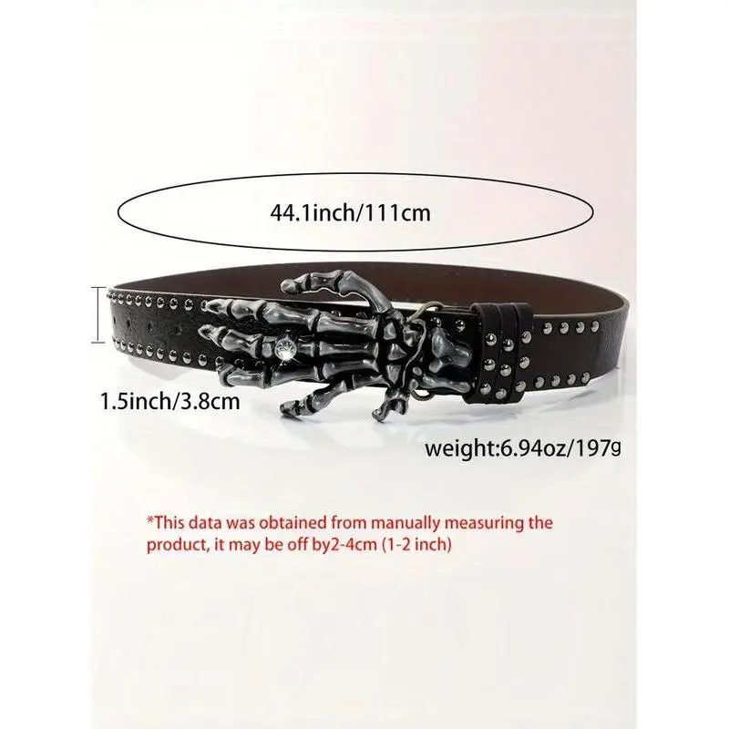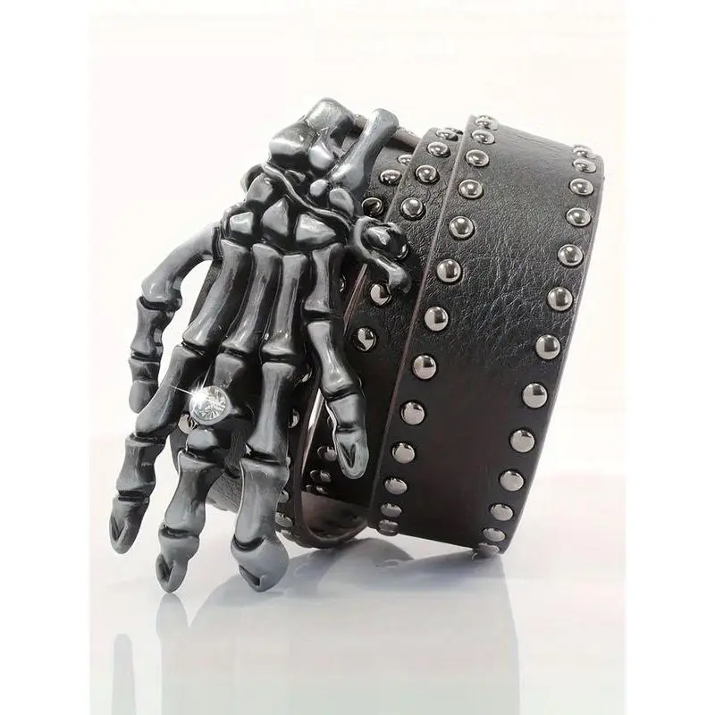 【Punk Element】: Features a distinctive skull hand motif, setting it apart from ordinary belts and enhancing its edgy appeal. 【Universal Fit】: Accommodates both men and women with an adjustable design, ensuring it meets diverse sizing needs effectively. 【All-Season Wear】: Crafted for wear throughout the year, making it a reliable accessory for various outfits and occasions. 【Durable Construction】: Made with robust materials that ensure long-lasting use, making it a practical addition to any wardrobe. 【Unique Aesthetic】: Combines retro styling with punk influences, offering a fresh take on a classic belt silhouette for fashion-forward enthusiasts.