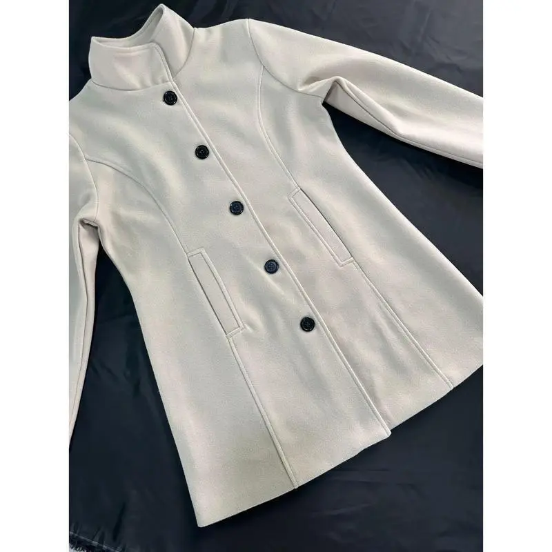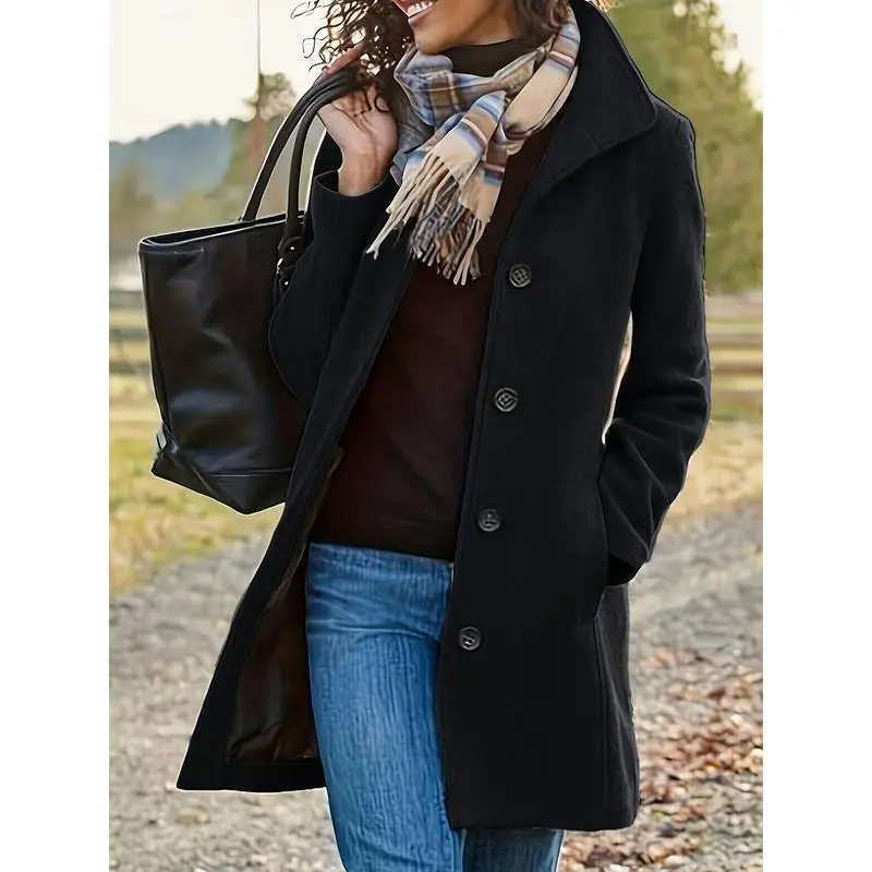 Solid Color Single-Breasted Coat, Casual Long Sleeve Fall Winter Coat, Women's Clothing Fabric Womenswear