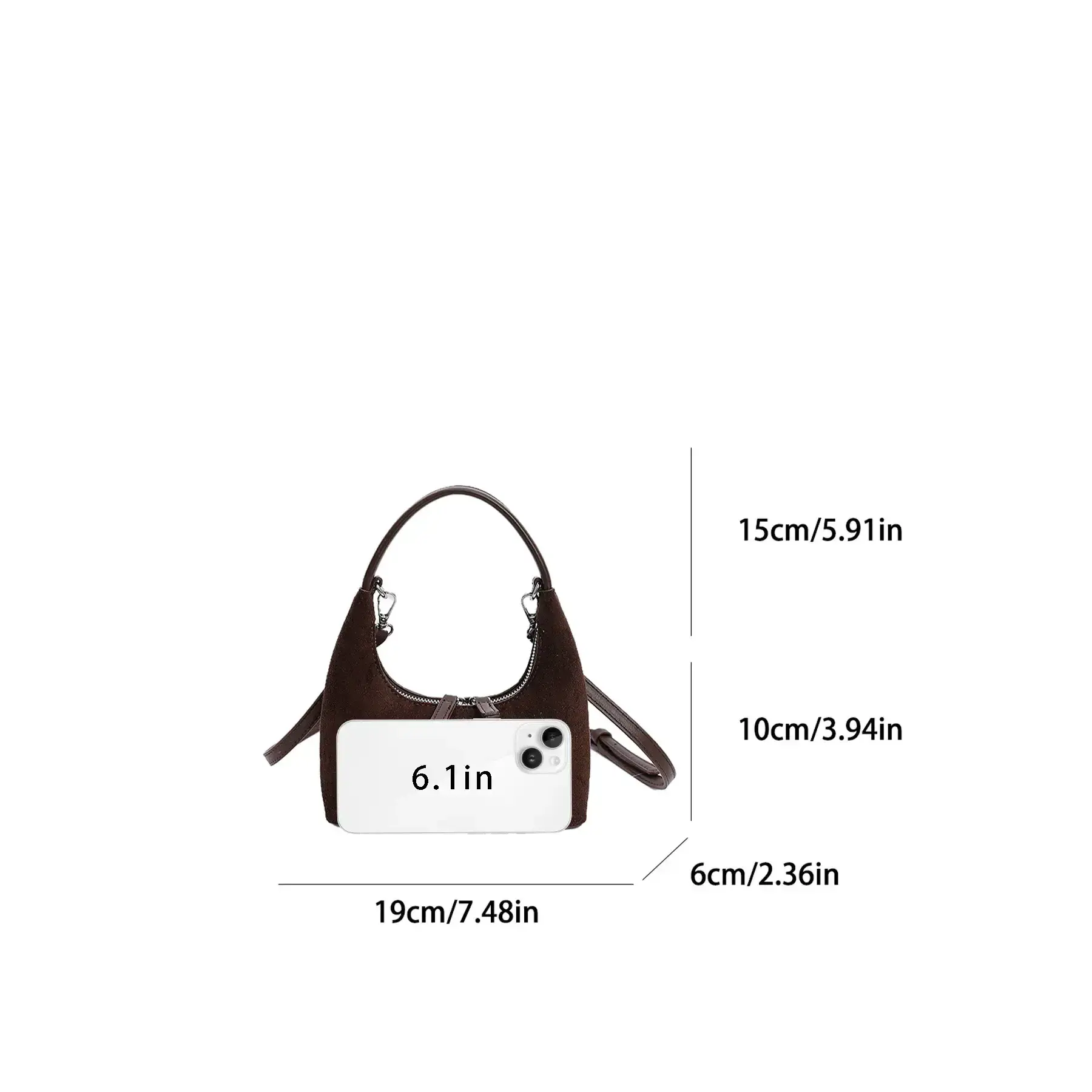 【Lightweight Fabric】: Crafted from solid color suede, this handbag is both light and easy to carry throughout your day. 【Seasonal Appeal】: Designed specifically for fall and winter, this handbag complements the seasonal wardrobe perfectly. 【Compact Size】: This small handbag offers an unobtrusive carry that fits your daily essentials without bulk. 【Simple Aesthetic】: Featuring a minimalist look, this handbag avoids any unnecessary embellishments for a clean finish. 【Everyday Utility】: This handbag's versatile nature makes it suitable for daily commuting needs, blending practicality with style.