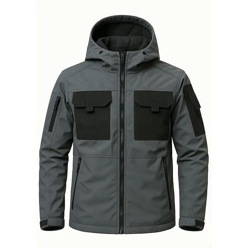 HOMUG Men's Casual Hooded Hiking Jacket - Outdoor Functional Windproof and Breathable Coat - Warm Coat - Long-Sleeved Coat - Tactical Waterproof Softshell Jacket - Multi-Functional Hooded Shirt, Suitable for Autumn and Winter Clothing Menswear