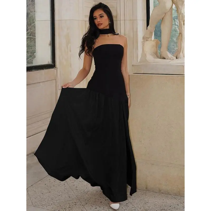 Women's Plain Split Thigh Tube Formal Dress with Scarf, Elegant Strapless Dress for Party Club Beach Vacation, Ladies Clothes for All Seasons