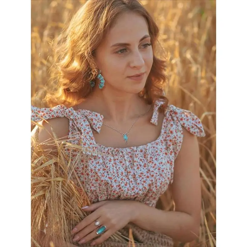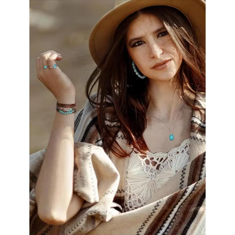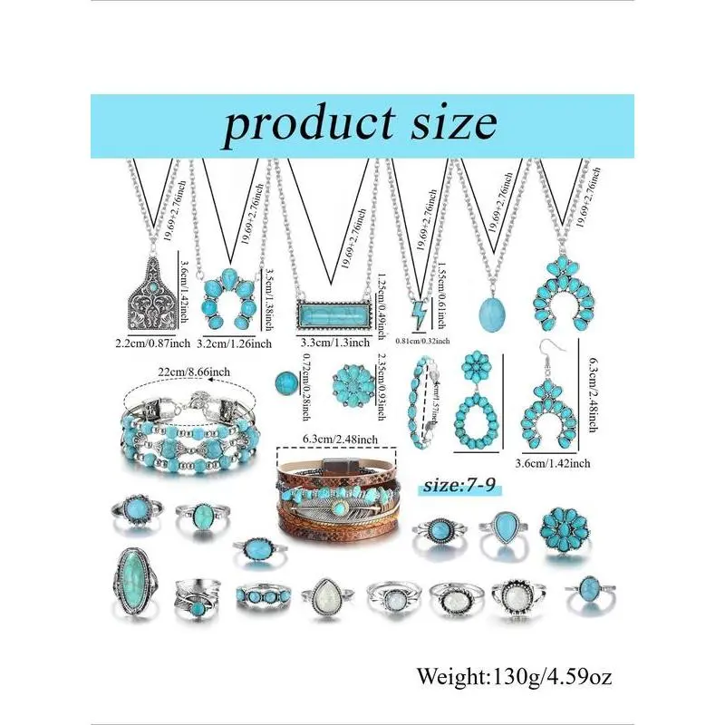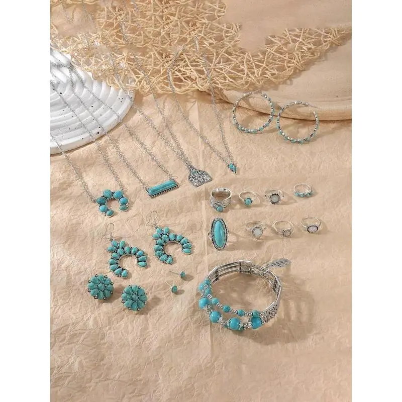 Boho Style Turquoise Decorated Jewelry Set, Necklace & Bracelet & Earrings & Rings, Fashion Jewelry for Party, Daily Decor, Trendy All-match & Exquisite Jewelry for Birthday GiftGift