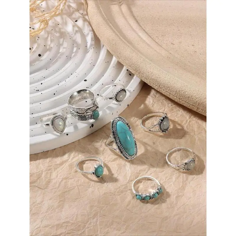 Boho Style Turquoise Decorated Jewelry Set, Necklace & Bracelet & Earrings & Rings, Fashion Jewelry for Party, Daily Decor, Trendy All-match & Exquisite Jewelry for Birthday Gift