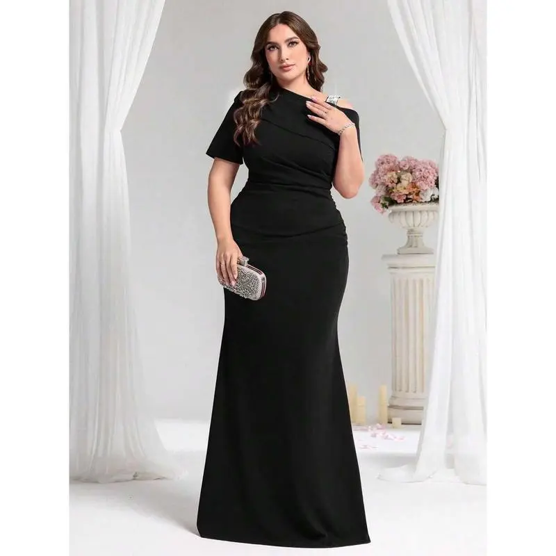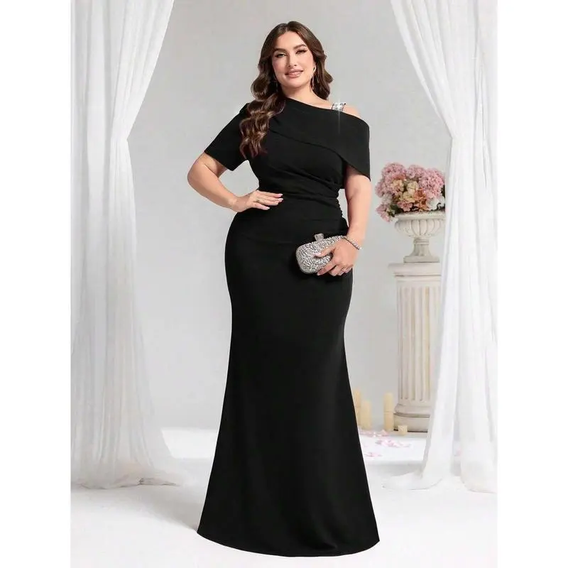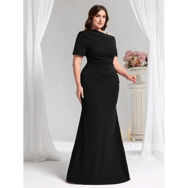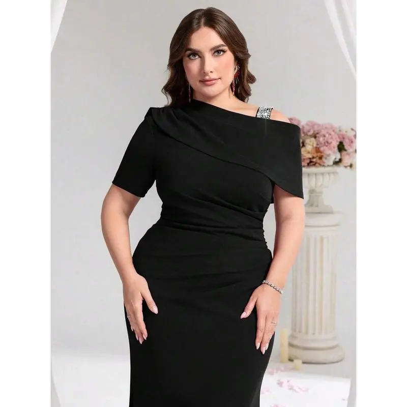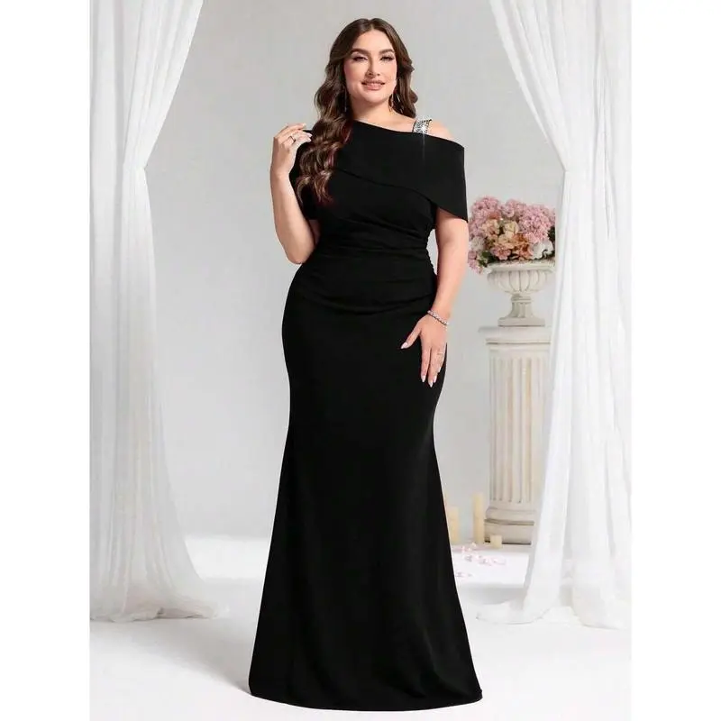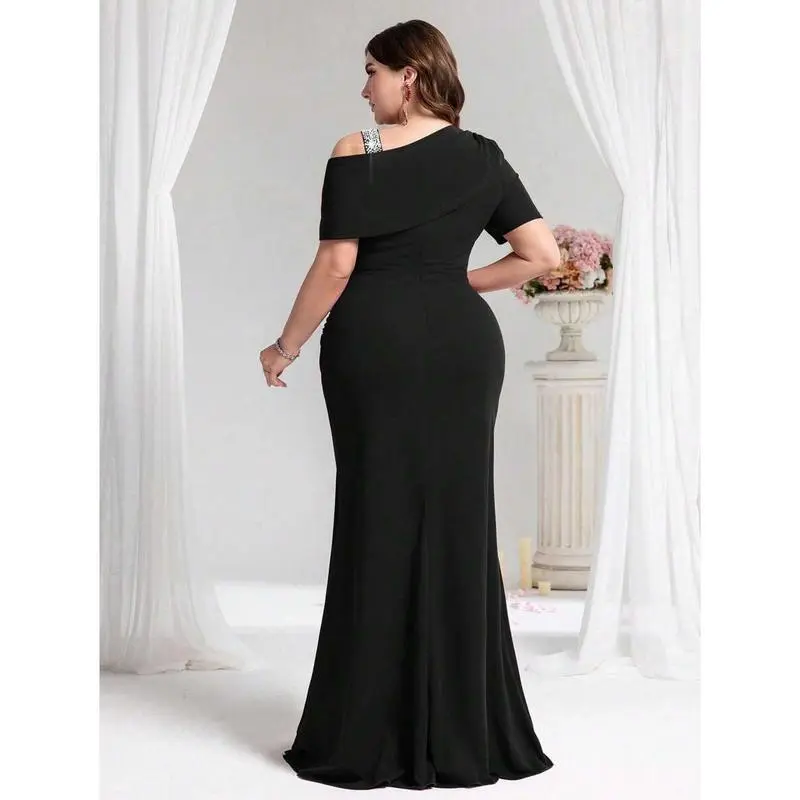 Sleeve Type:Batwing Sleeve Waist Line:High Waist Sleeve length: short sleeve Fit Type:Slim Fit Care Instructions:Machine wash or professional dry clean Plus Size Asymmetrical Beaded Embellished Formal Evening Gown, Party Dress, For Wedding Guest