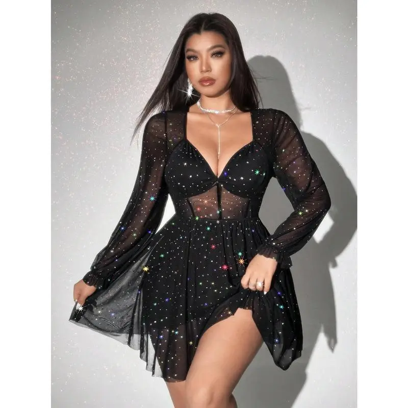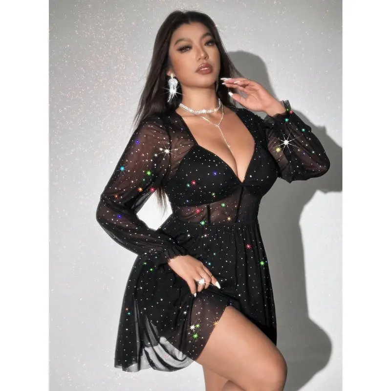 PlusSizeWomenV-NeckLongSleeveBodyconMiniDressForPartyGift