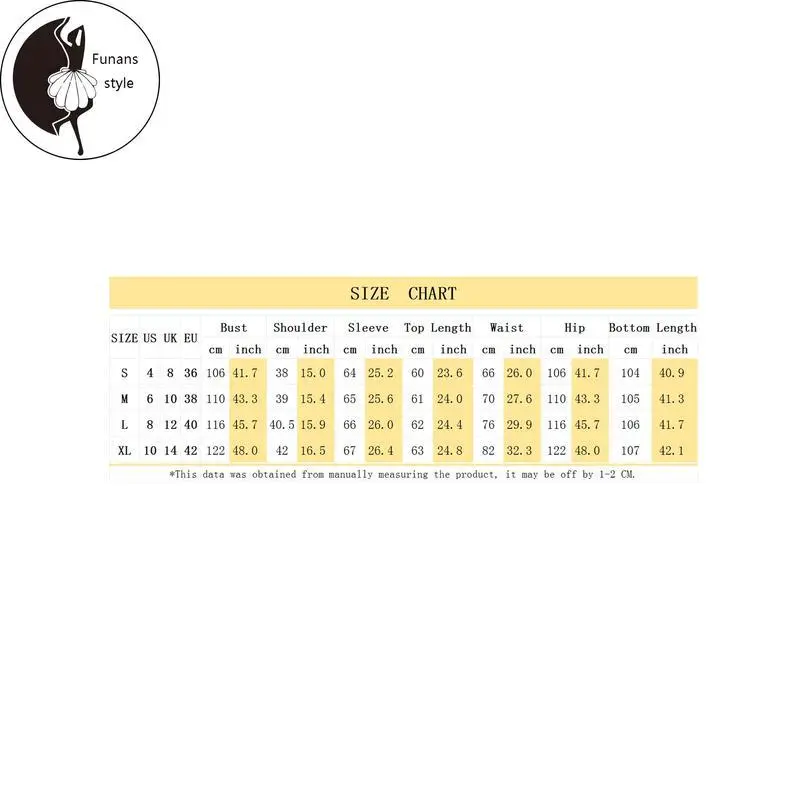 Women Christmas Pajamas Lounge Set Santa Christmas Tree Print Long Sleeve Tops and Pants 2 Piece Loungewear Outfits S Tops Length: 60 Bust: 106 Sleeve: 64 Shoulder: 38 Pants Length: 104 Waist: 66 Hip: 106 M Tops Length: 61 Bust: 110 Sleeve: 65 Shoulder: 39 Pants Length: 105 Waist: 70 Hip: 110 L Tops Length: 62 Bust: 116 Sleeve: 66 Shoulder: 40.5 Pants Length: 106 Waist: 76 Hip: 116 XL Tops Length: 63 Bust: 122 Sleeve: 67 Shoulder: 42 Pants Length: 107 Waist: 82 Hip: 122 S Tops Length: 23.62 Bust: 41.73 Sleeve: 25.2 Shoulder: 14.96 Pants Length: 40.94 Waist: 25.98 Hip: 41.73 M Tops Length: 24.02 Bust: 43.31 Sleeve: 25.59 Shoulder: 15.35 Pants Length: 41.34 Waist: 27.56 Hip: 43.31 L Tops Length: 24.41 Bust: 45.67 Sleeve: 25.98 Shoulder: 15.94 Pants Length: 41.73 Waist: 29.92 Hip: 45.67 XL Tops Length: 24.8 Bust: 48.03 Sleeve: 26.38 Shoulder: 16.54 Pants Length: 42.13 Waist: 32.28 Hip: 48.03 Name: Women Christmas Pajamas Material: 97% Polyester + 3% Elastane Collar: Turn-Down Collar Sleeve Length: Long Sleeve Pattern: Santa Christmas Tree Print 1 x Tops 1 x Pants 1. Please kindly allow a 2-3% difference according to manual measurement. 2. Please check the measurement chart carefully before you buy the item. (1 inch = 2.54 cm) 3. Please note that a slight color difference should be acceptable due to the light and screen. Thanks. If the product has any quality problems, please tell us, we will help you solve the problem as quickly as possible.